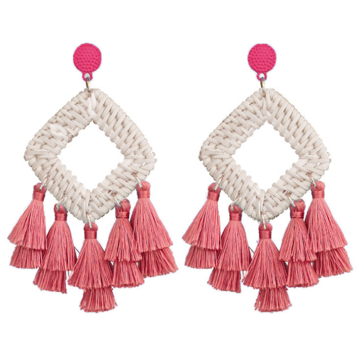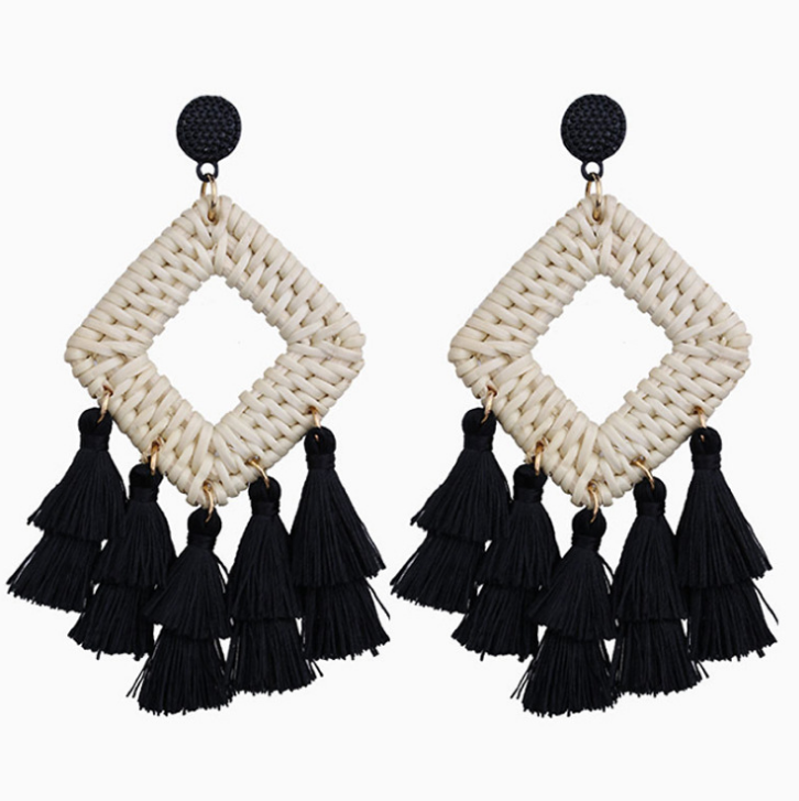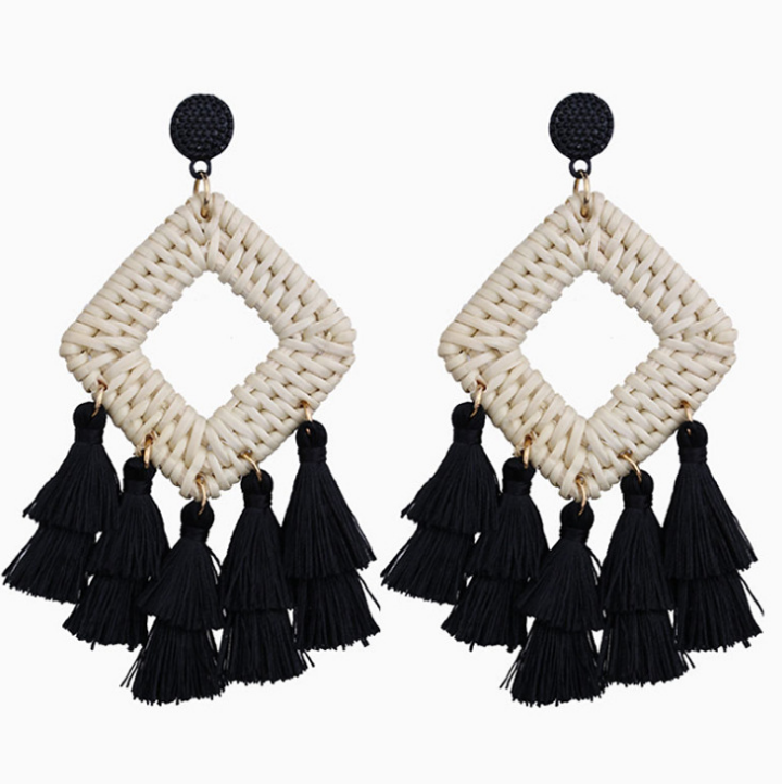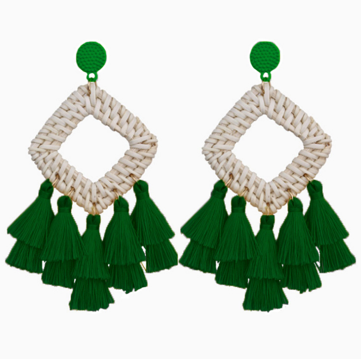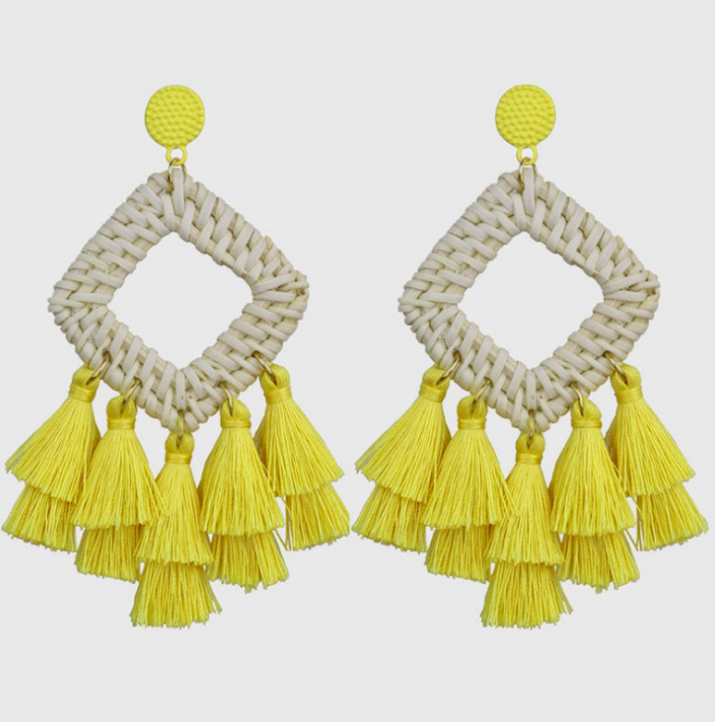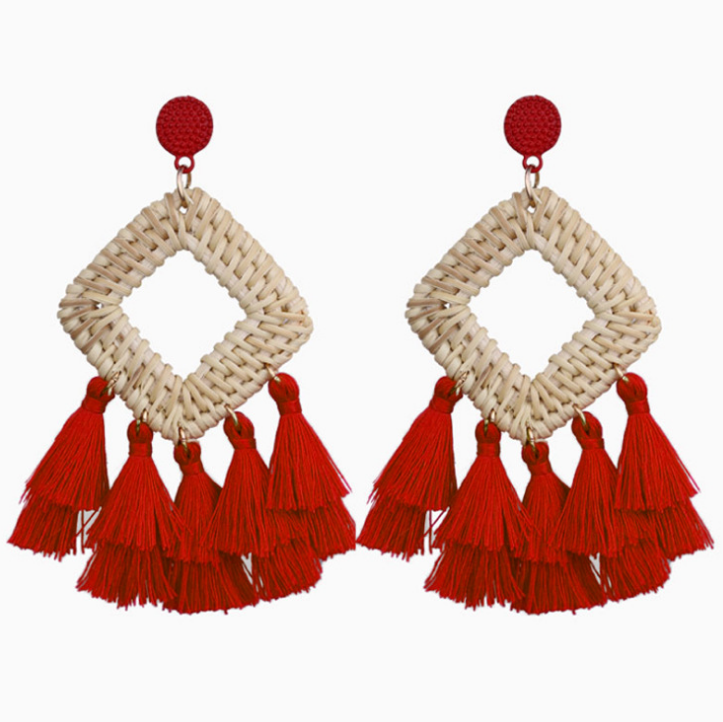 Fabric Tassel Rattan dangle bohemian Earrings Handmade Woven Earring Jewelry