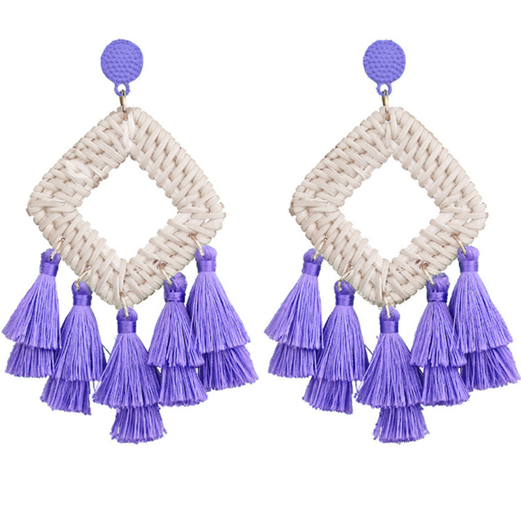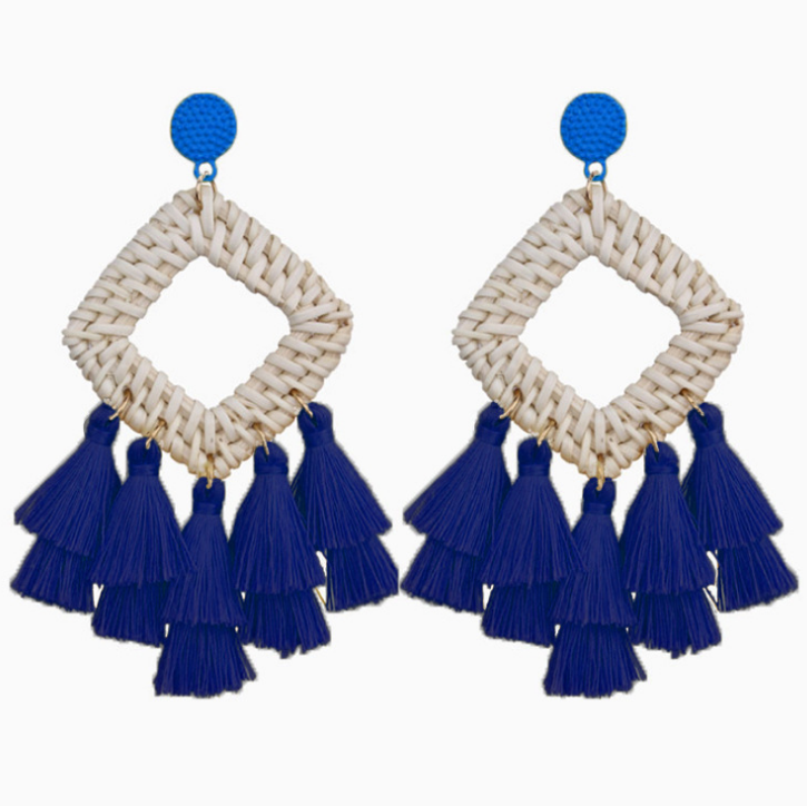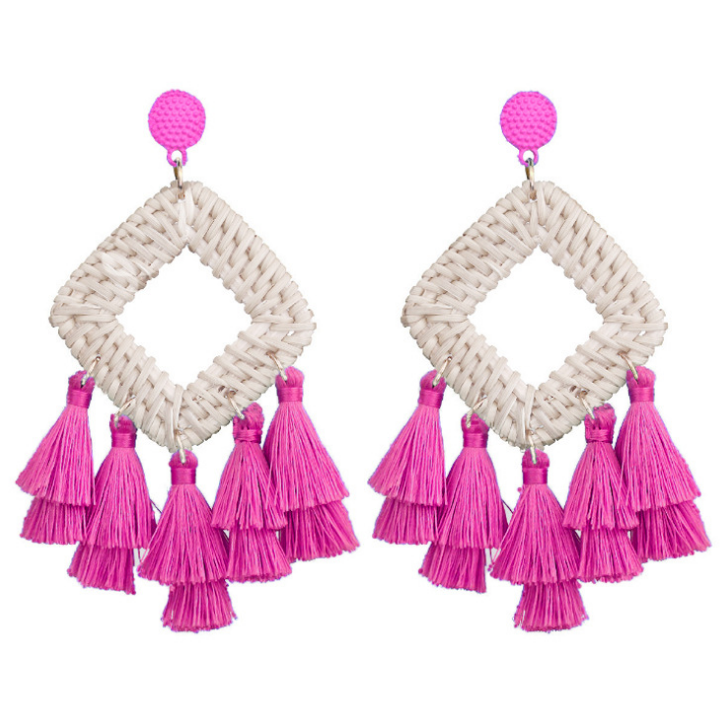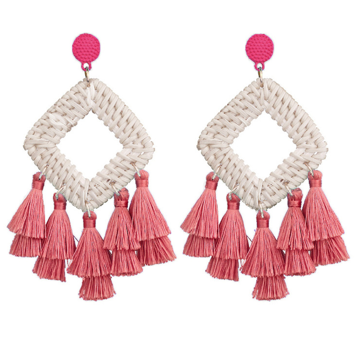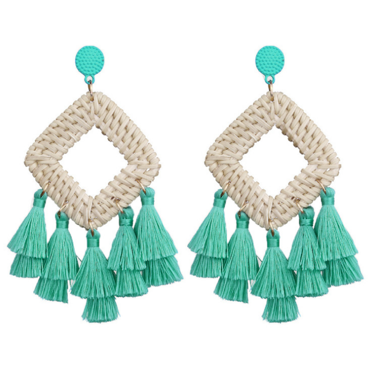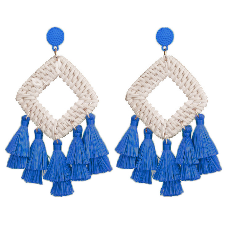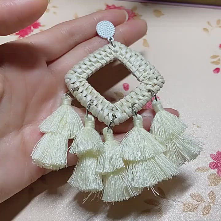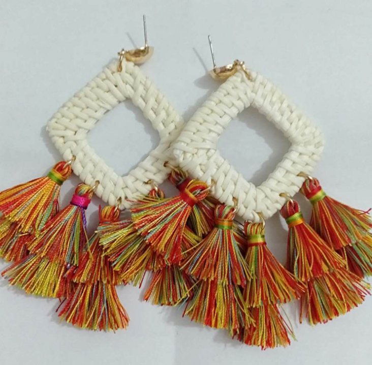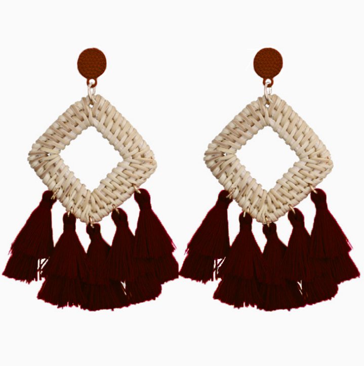 Fabric Tassel Rattan Earrings OEM Handmade Jewelry
