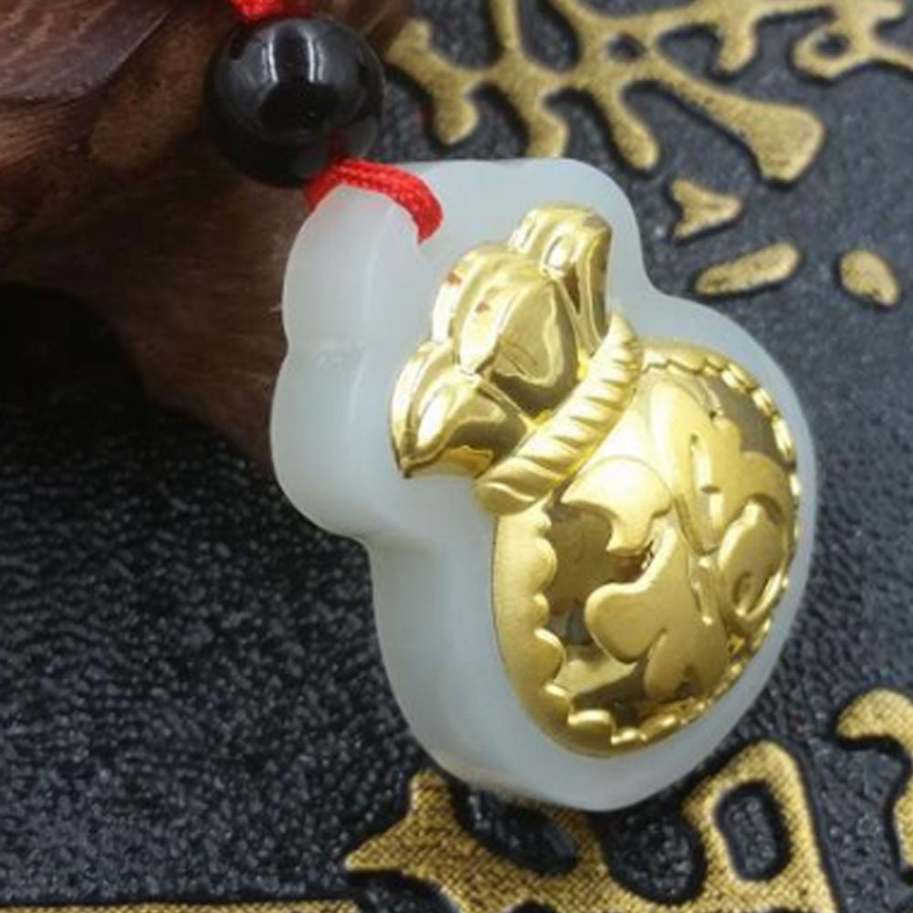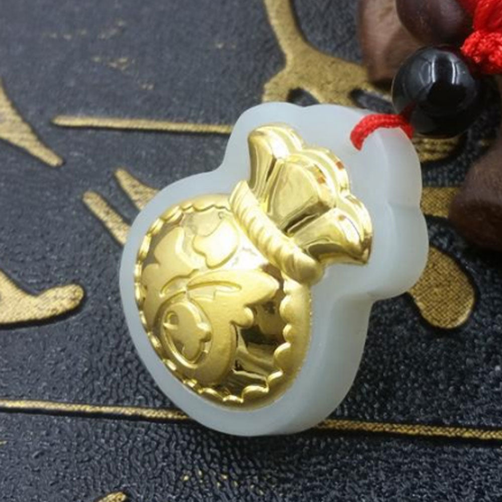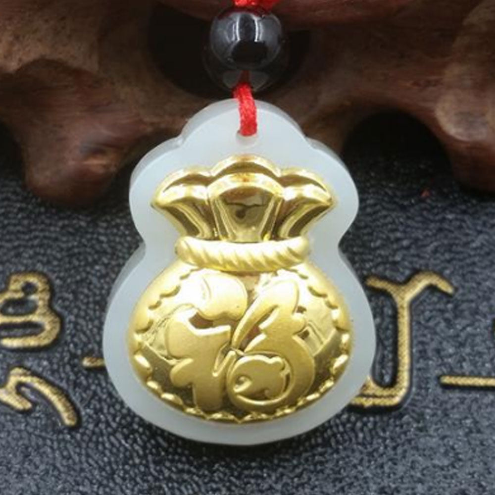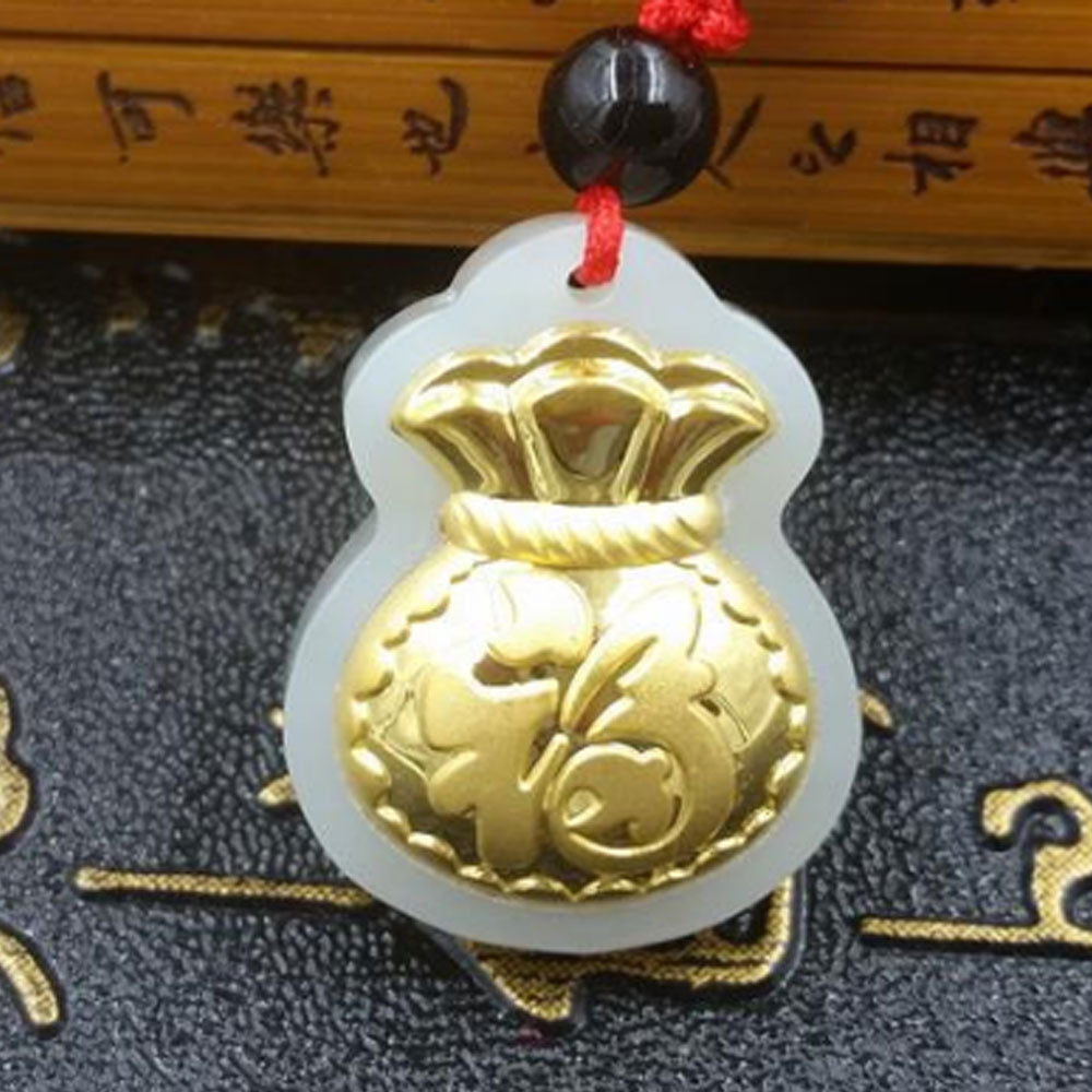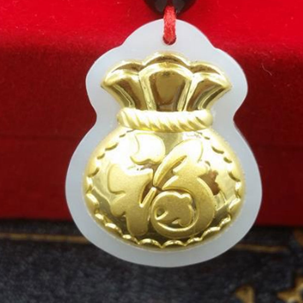 fahion Chinese 24k gold plated money bag hetian jade crystal charm pendant necklace jewelry