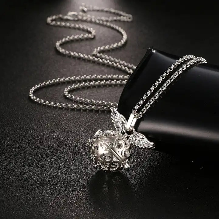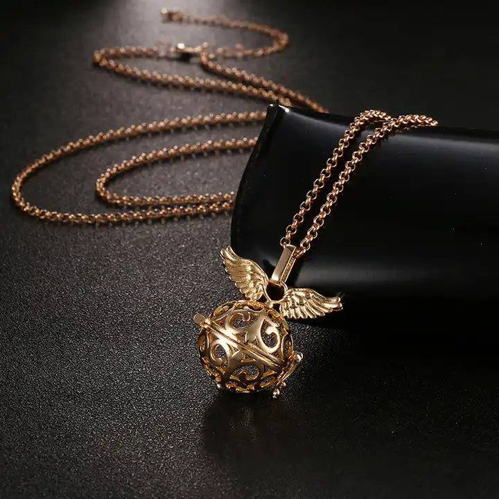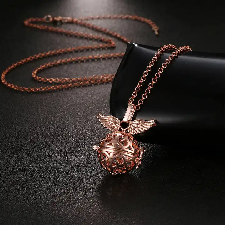 fahion trendy copper alloy angel wing aroma essential oil aromatherapy diffuser necklace antique chim ball pendant necklaces