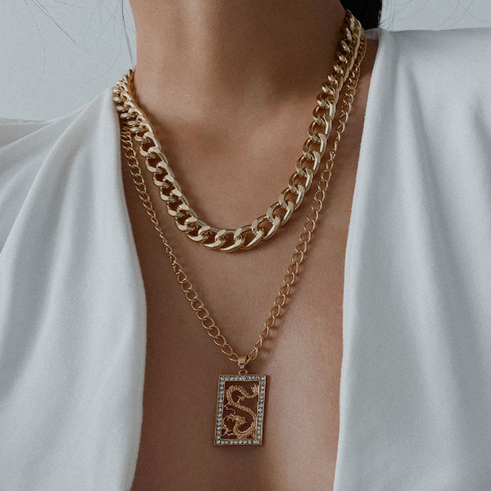 fashion 2 layers bohemian brass alloy gold plated zodiac dragon necklace jewelry