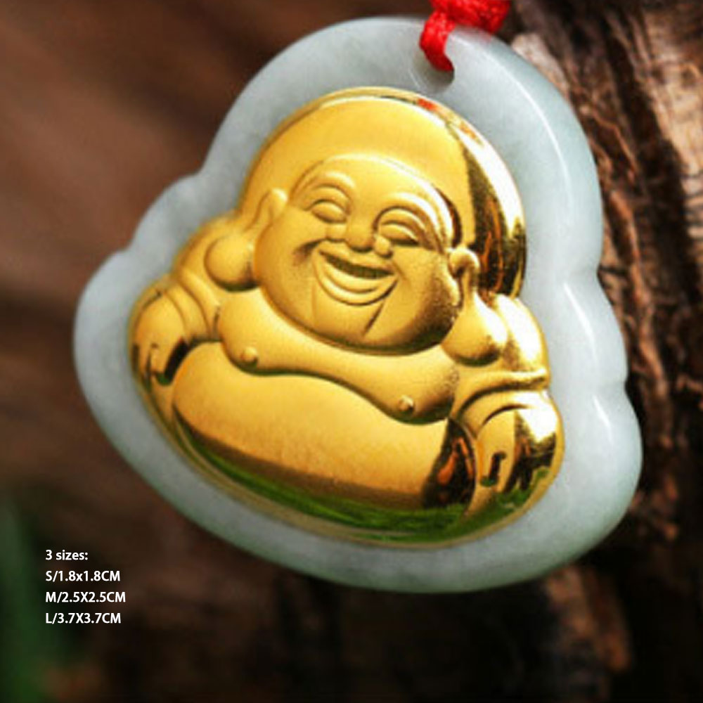 fashion 24k gold with jade stone laughing buddha necklace pendant