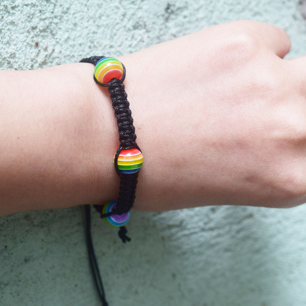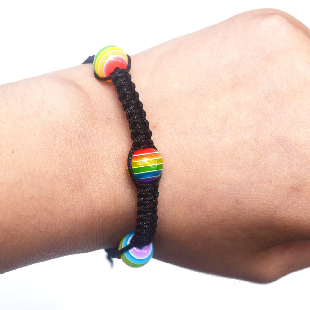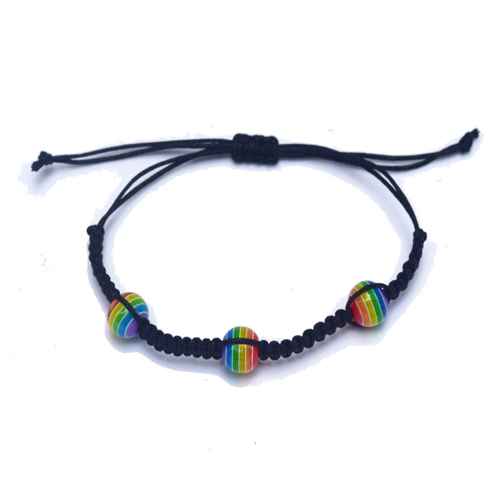 fashion black cord braided woven plastic gay pride charm bead adjustable bracelet lgbt lesbian bracelets unisex jewelry bulk