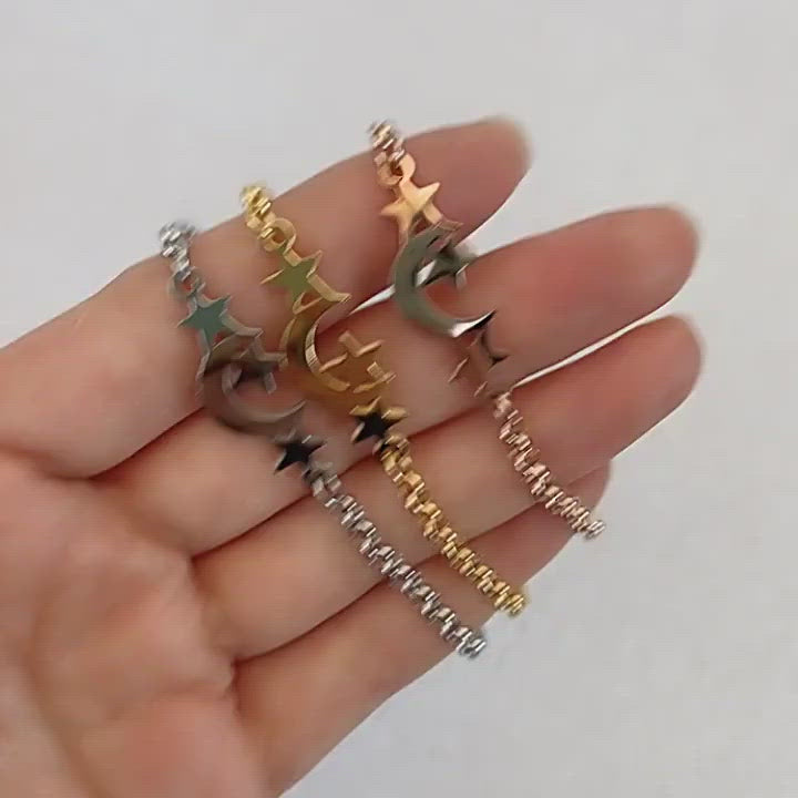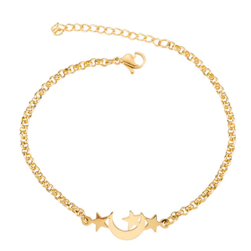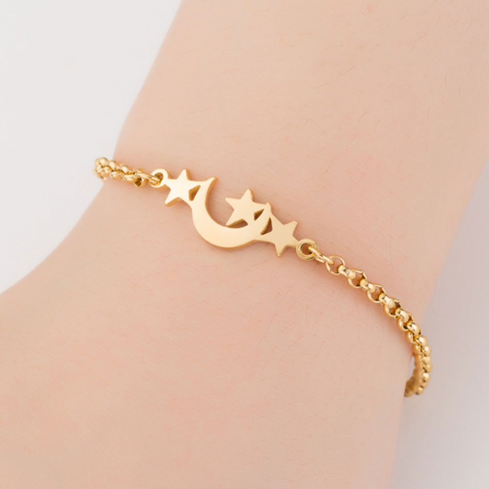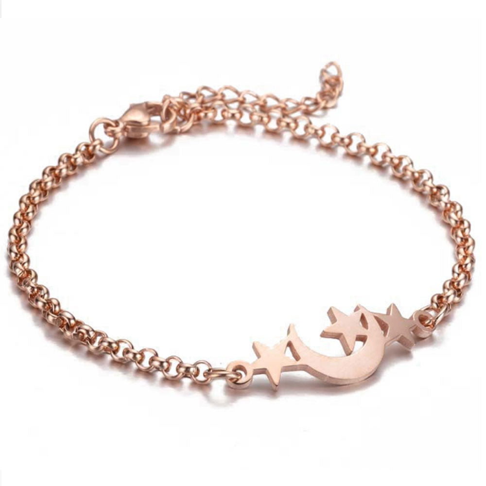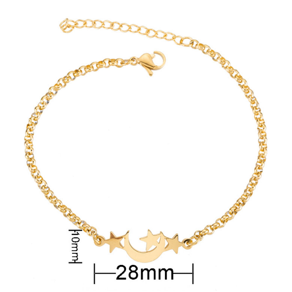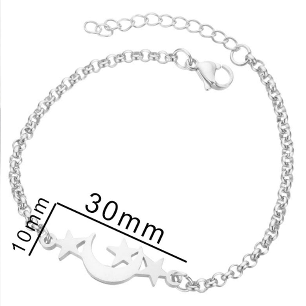 stainless steel chain star and moon charm bracelet