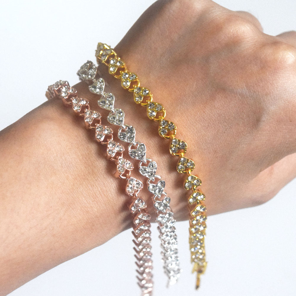 fashion brass alloy heart shape wrap bracelet diamond inlaid roman crystal bracelets jewelry