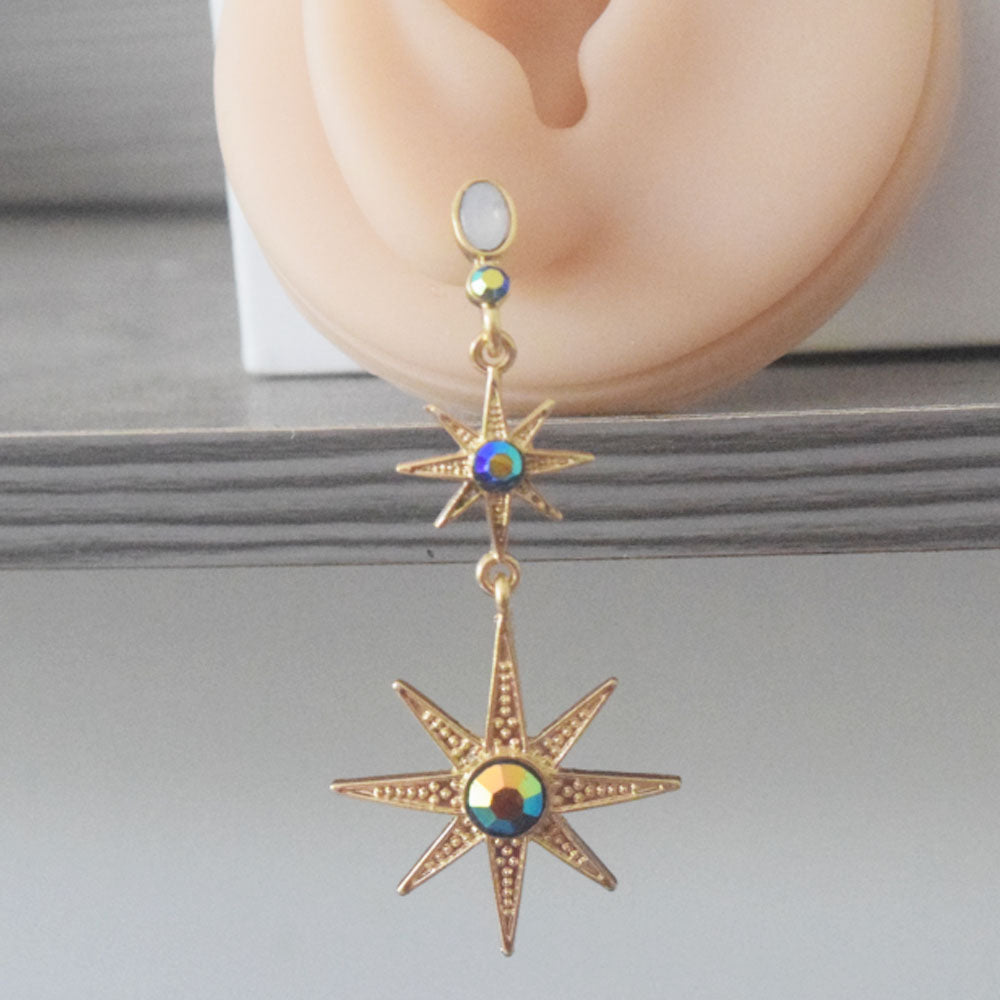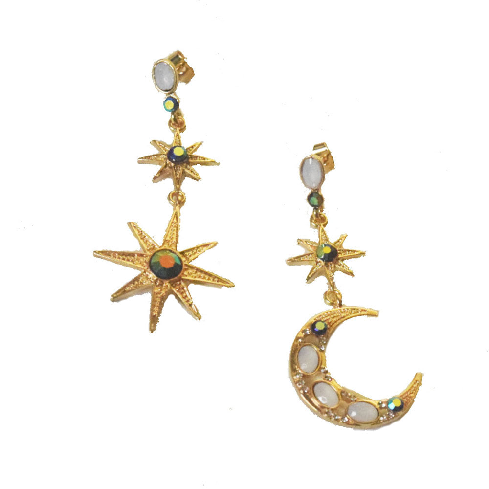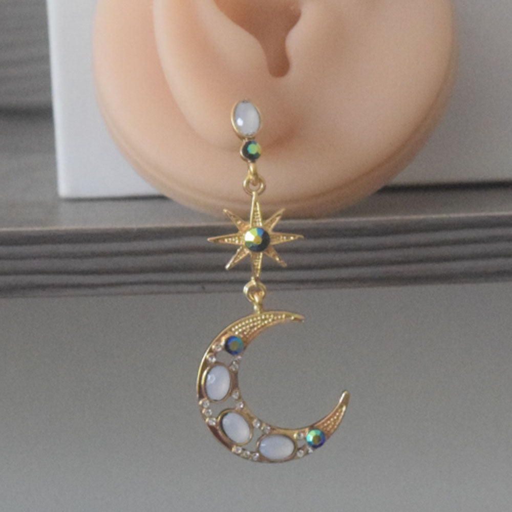 fashion chic alloy material glass crystal gold plate moon and star drop earring jewelry for women