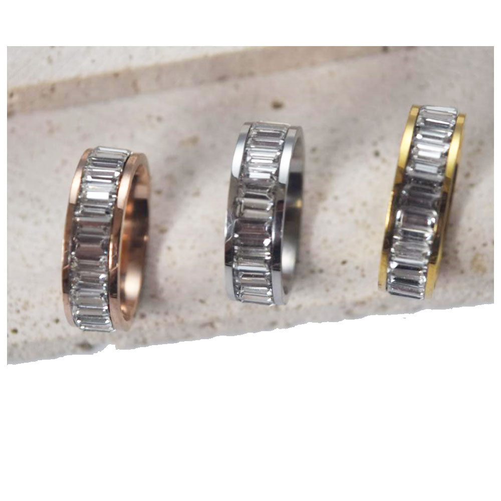 fashion chic party wedding stainless steel gold plated zircon beads inlay middle finger ring unisex for men and women