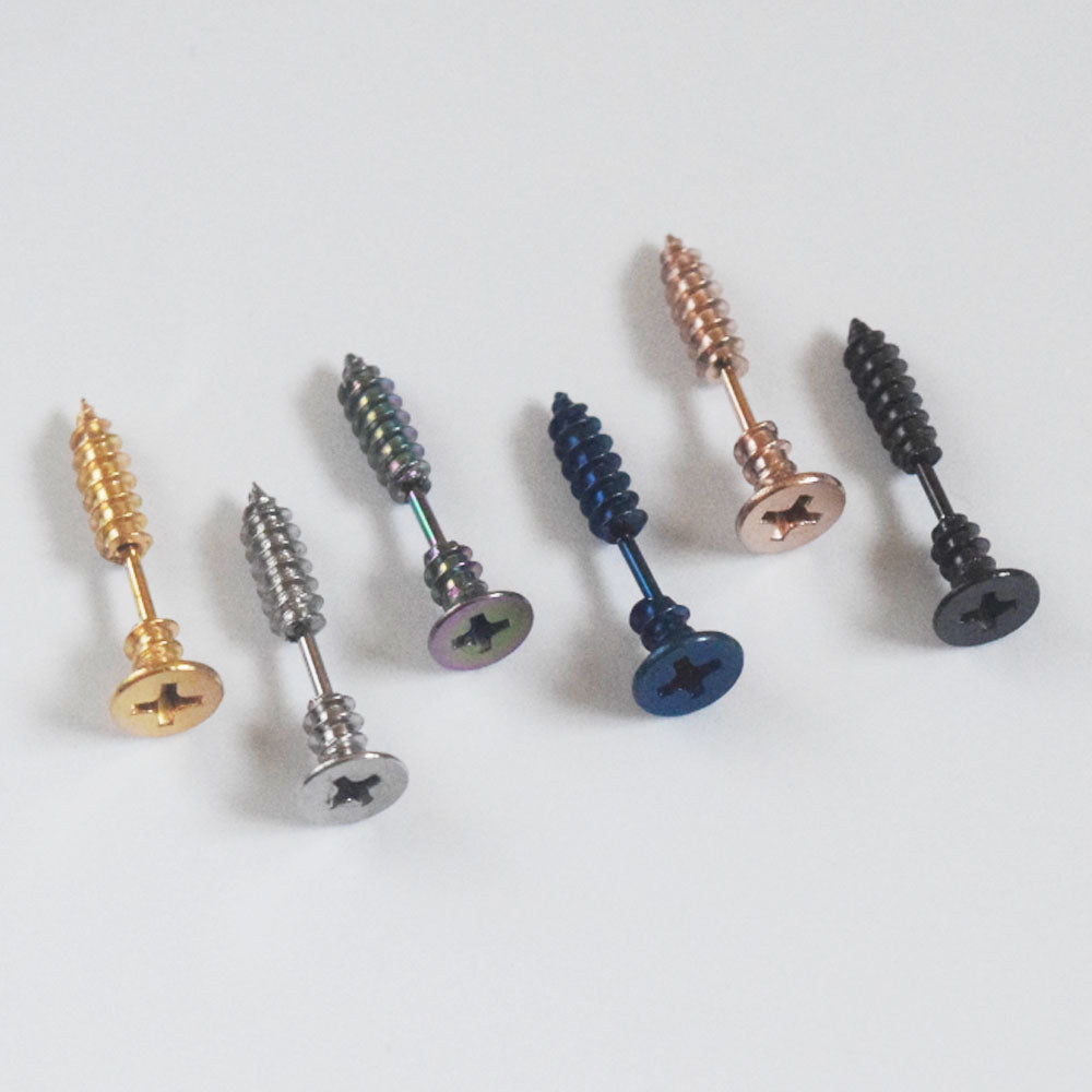 fashion chic stainless steel baguette earring men rivet screw stud earrings jewelry accessories