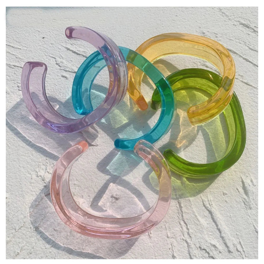 fashion epoxy acetate acrylic plastic resin open cuff bangle bracelet cuffs jewelry for women mix colors