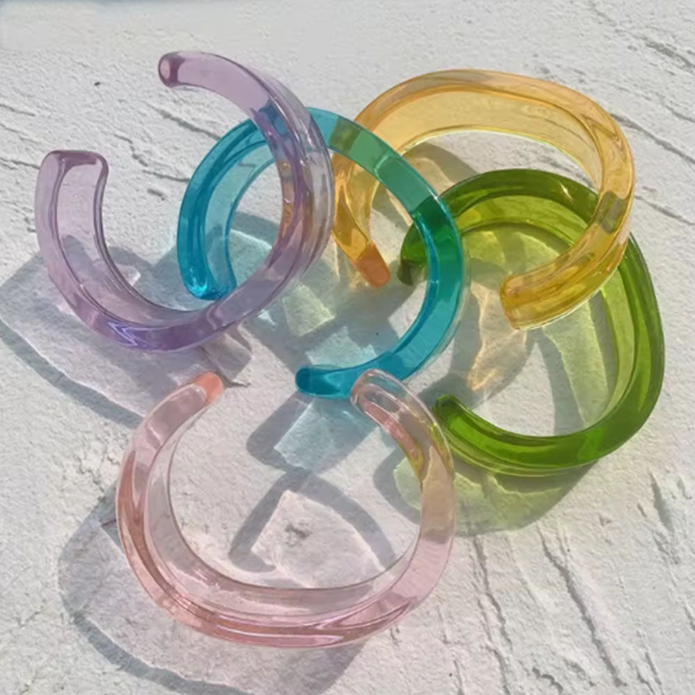 fashion epoxy acetate acrylic plastic resin open cuff bangle bracelet cuffs jewelry for women mix colors