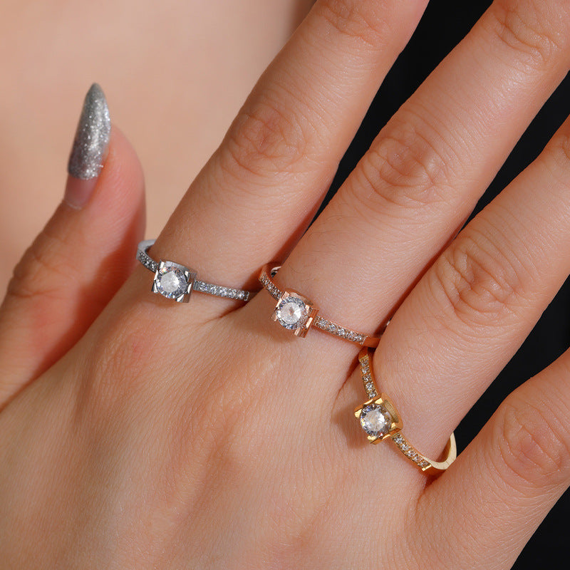 fashion female antique white single cubic zircon zirconia anniversary design durability engagement eternity ring for women
