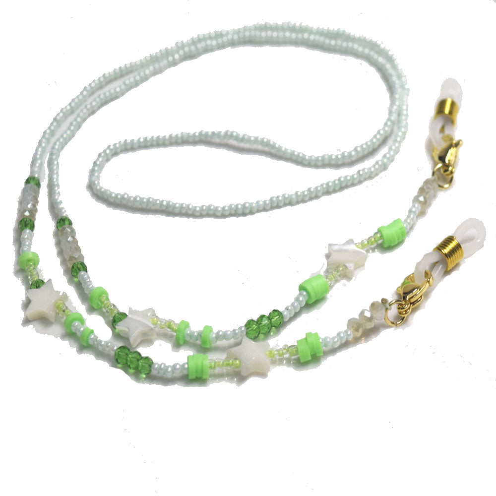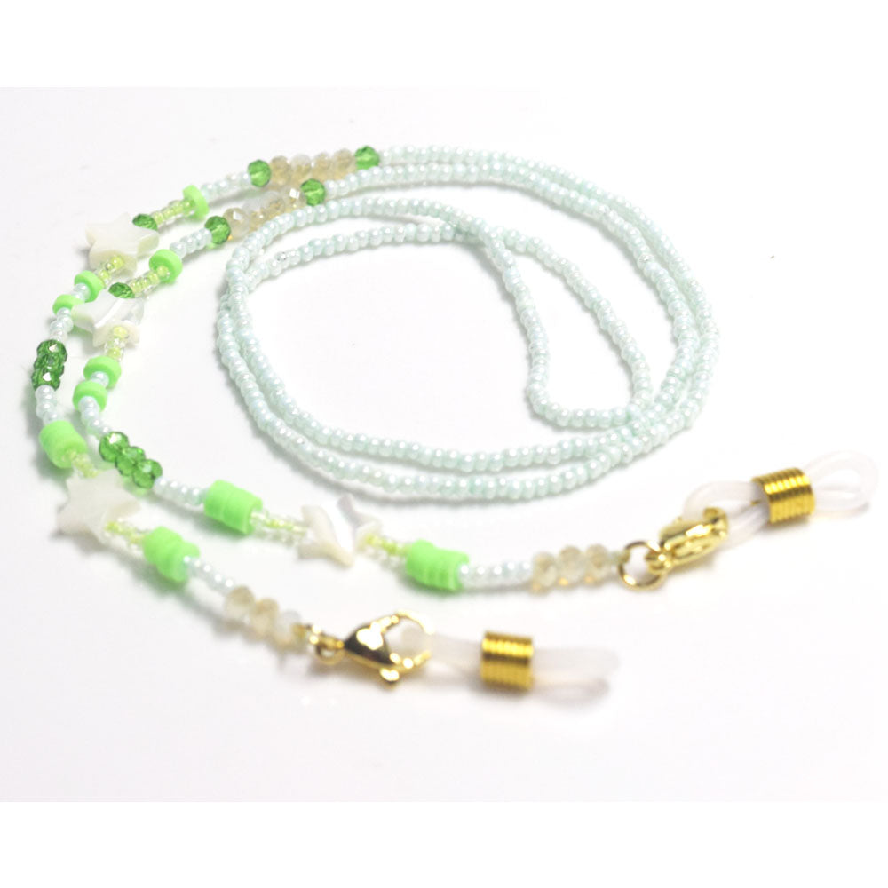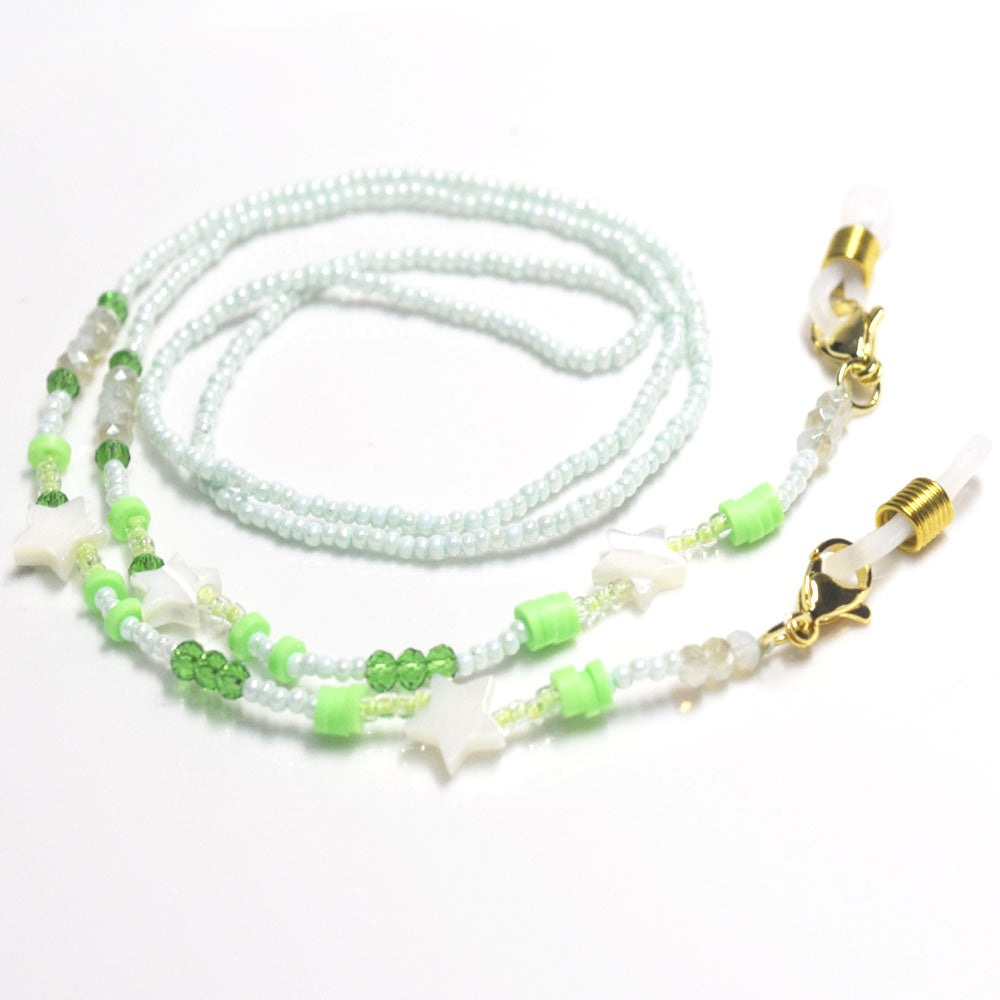 fashion glass seed beads beaded white shell star green color sun glasses and m-ask face chain holder Lanyard accessories