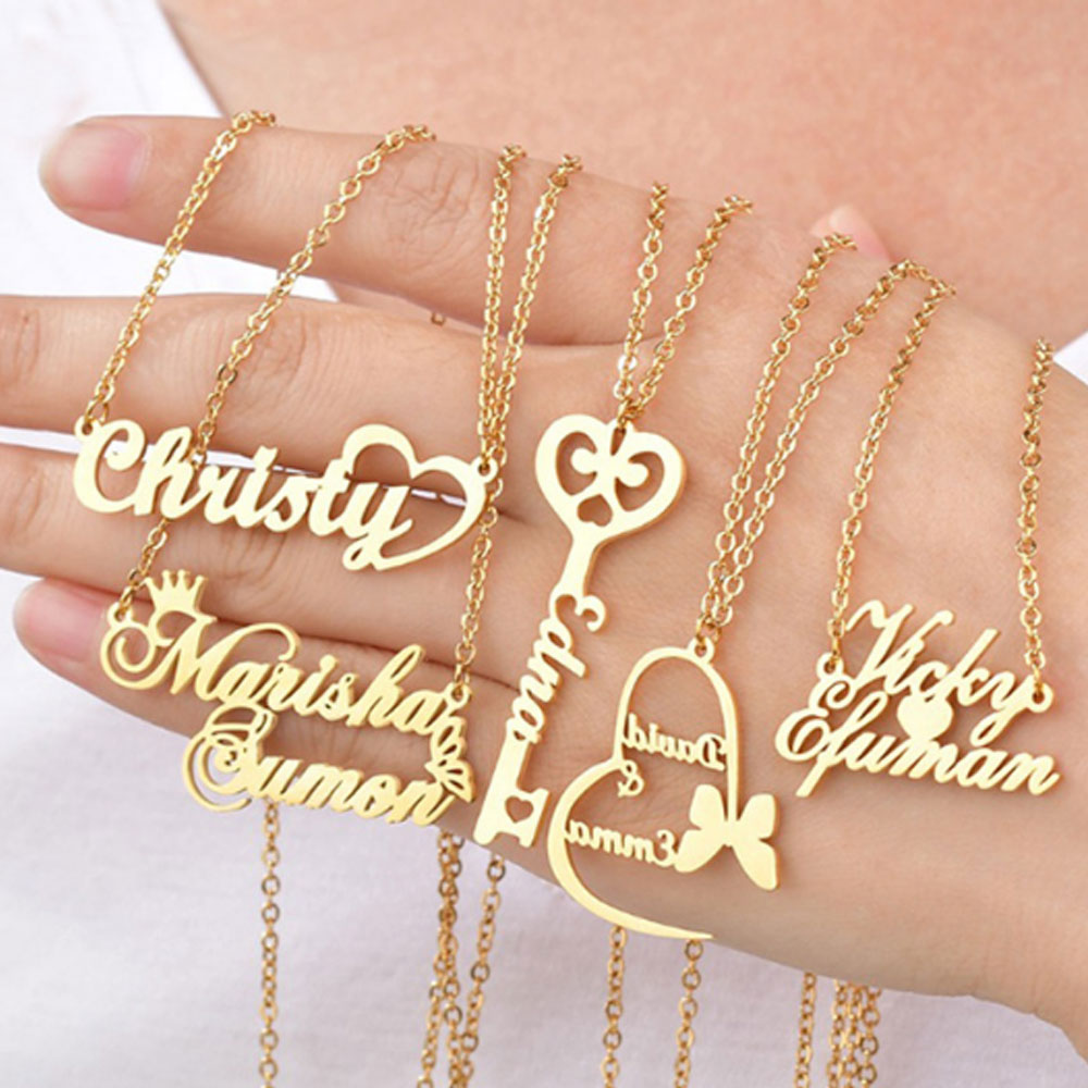 fashion gold plated stainless steel custom name heart charm pendant necklace personalised