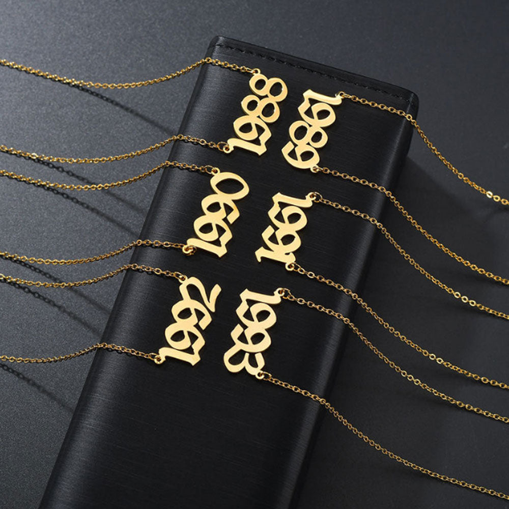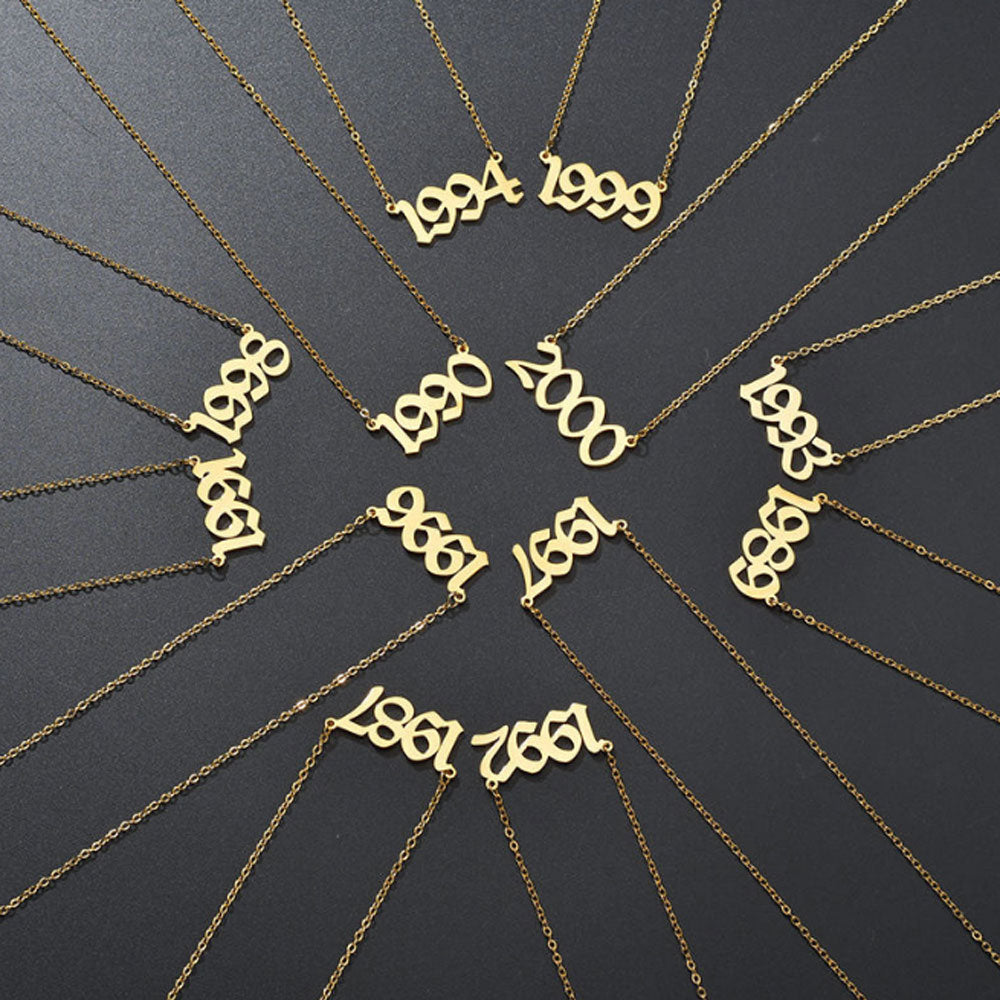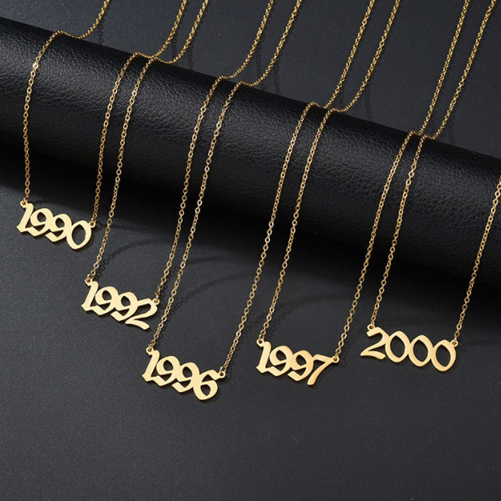fashion gold silver plated stainless steel old english font 18 inches chain pendant birth year necklace women