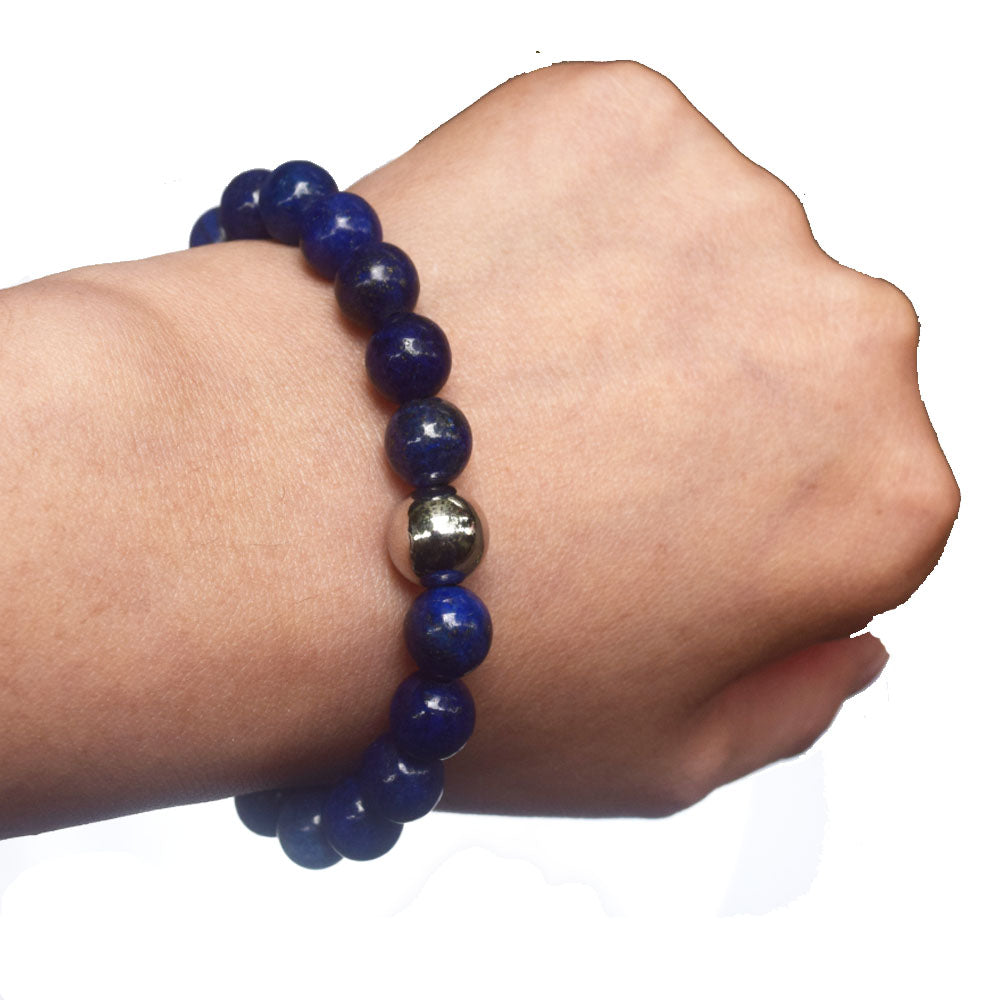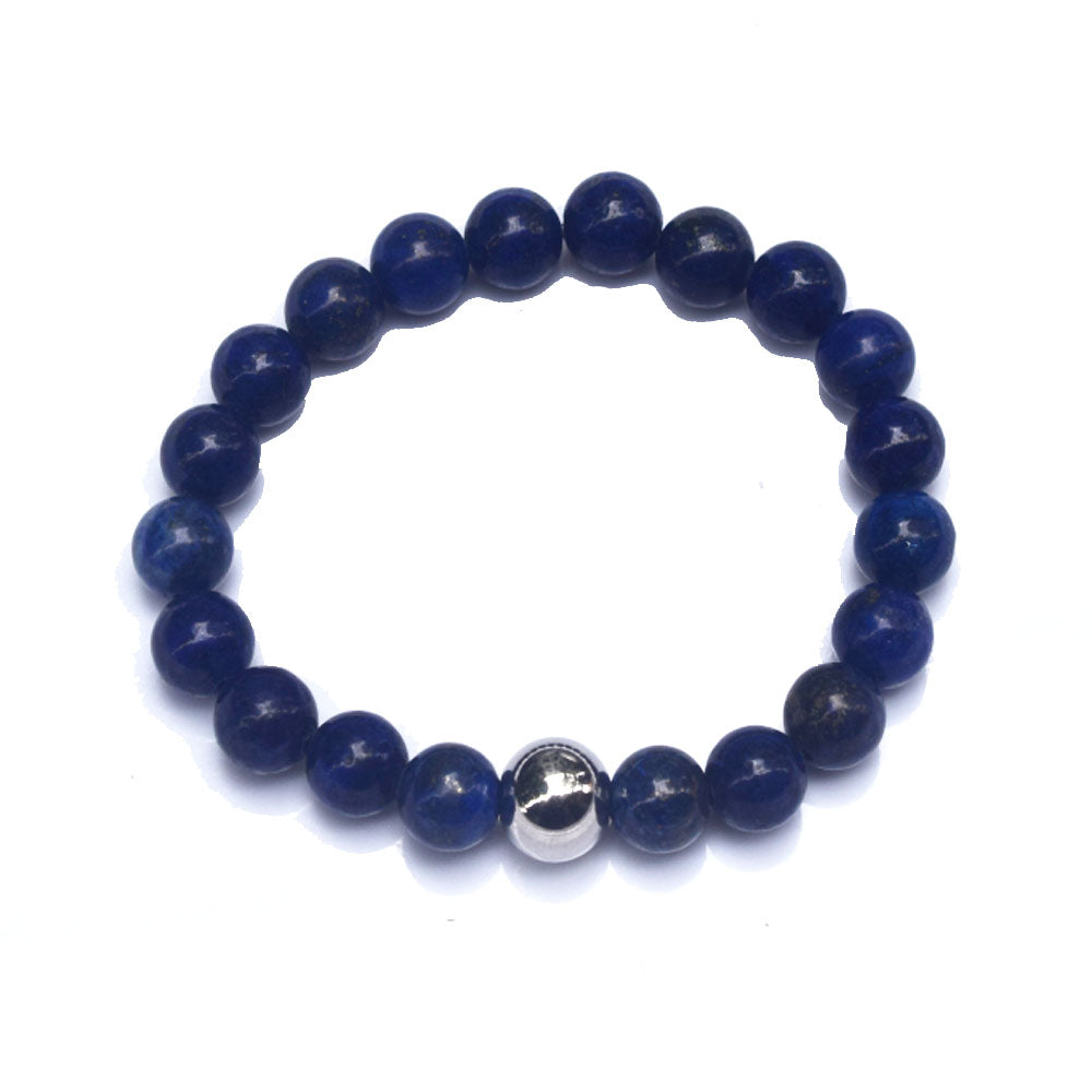 Fashion handmade 8mm blue lapis crystal bead 10mm stainless steel bead healing energy friendship bracelet bangle jewelry Women