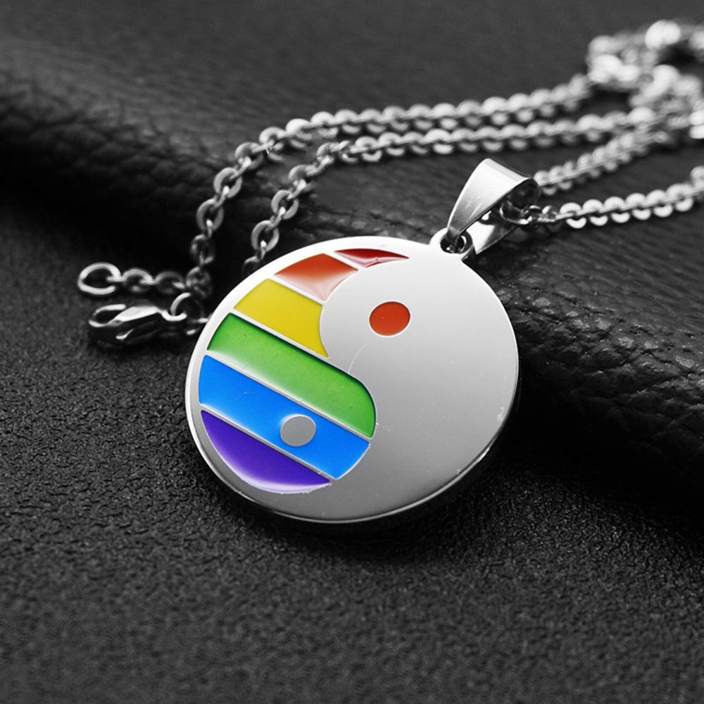 fashion his and hers stainless steele lgbt lesbian gay pride yin and yang necklace jewelry no chain pendant only
