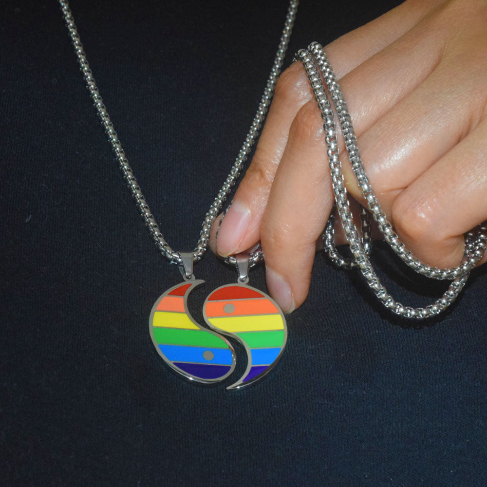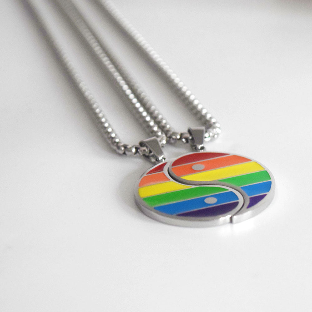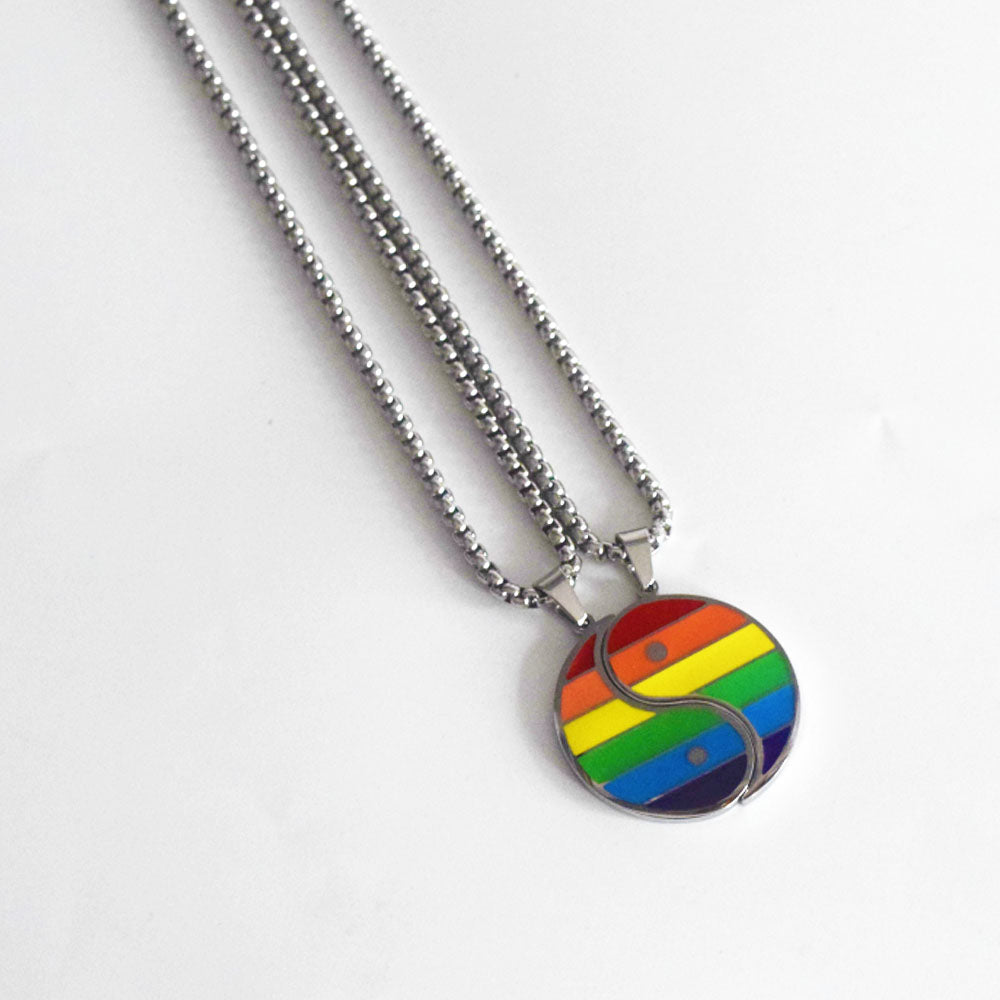 fashion his and hers stainless steele necklace with yin and yang lgbt gay pride couple lover pendant necklaces jewelry