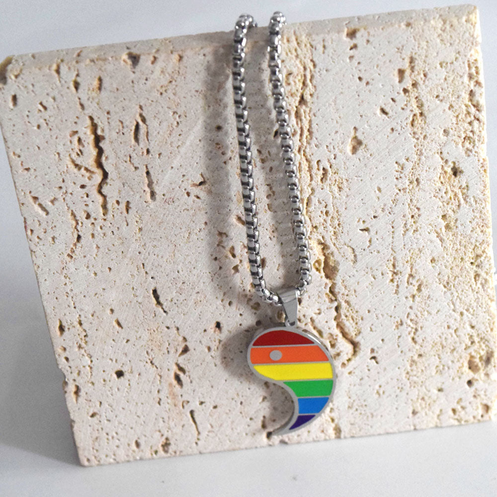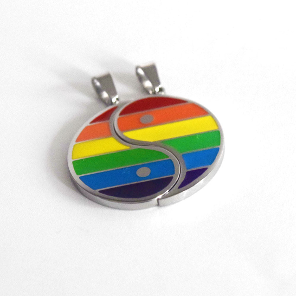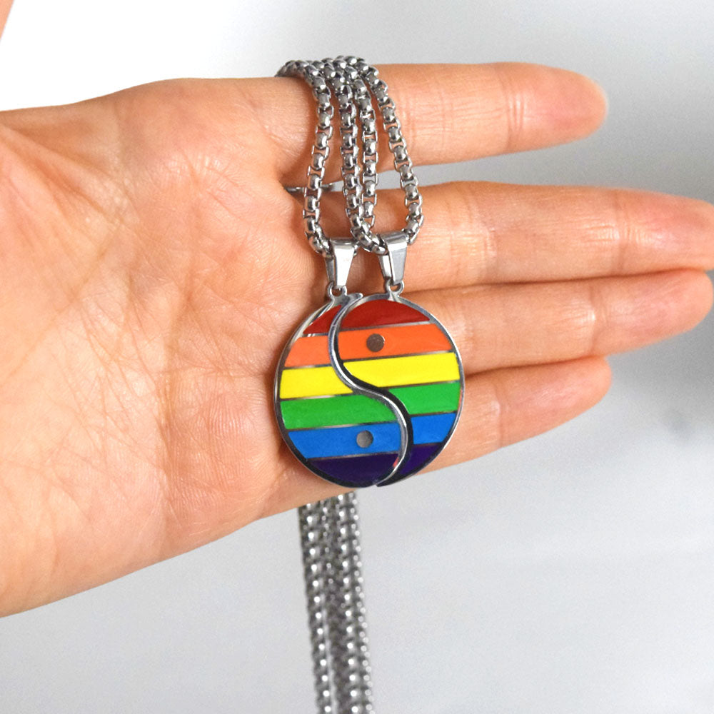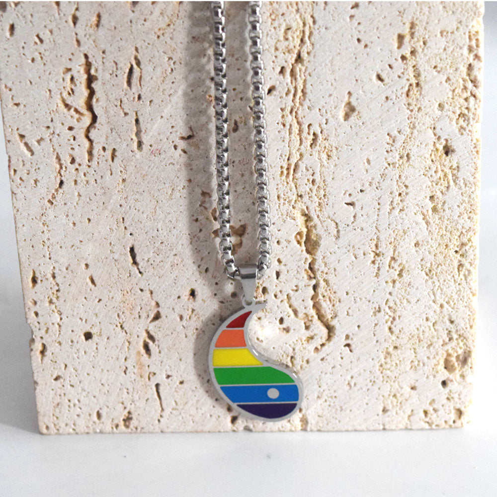 fashion his and hers stainless steele necklace with yin and yang lgbt gay pride couple lover pendant necklaces jewelry