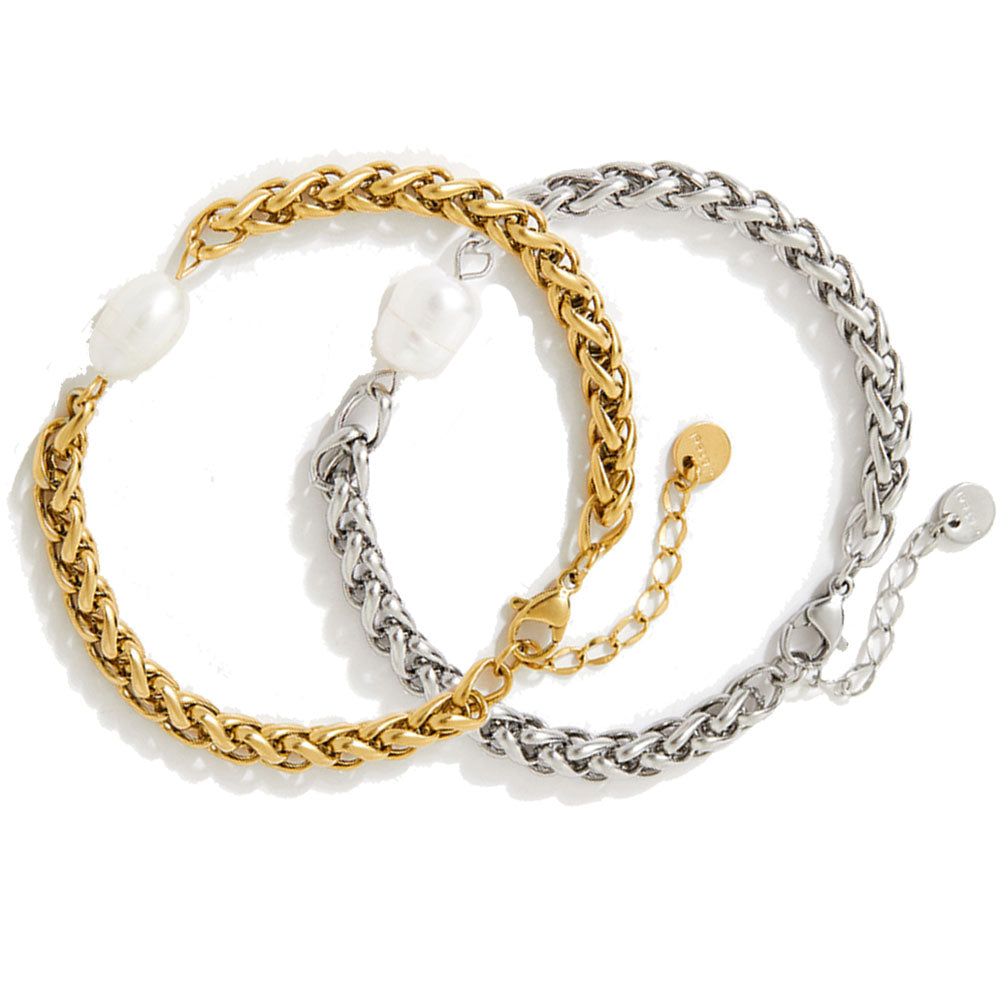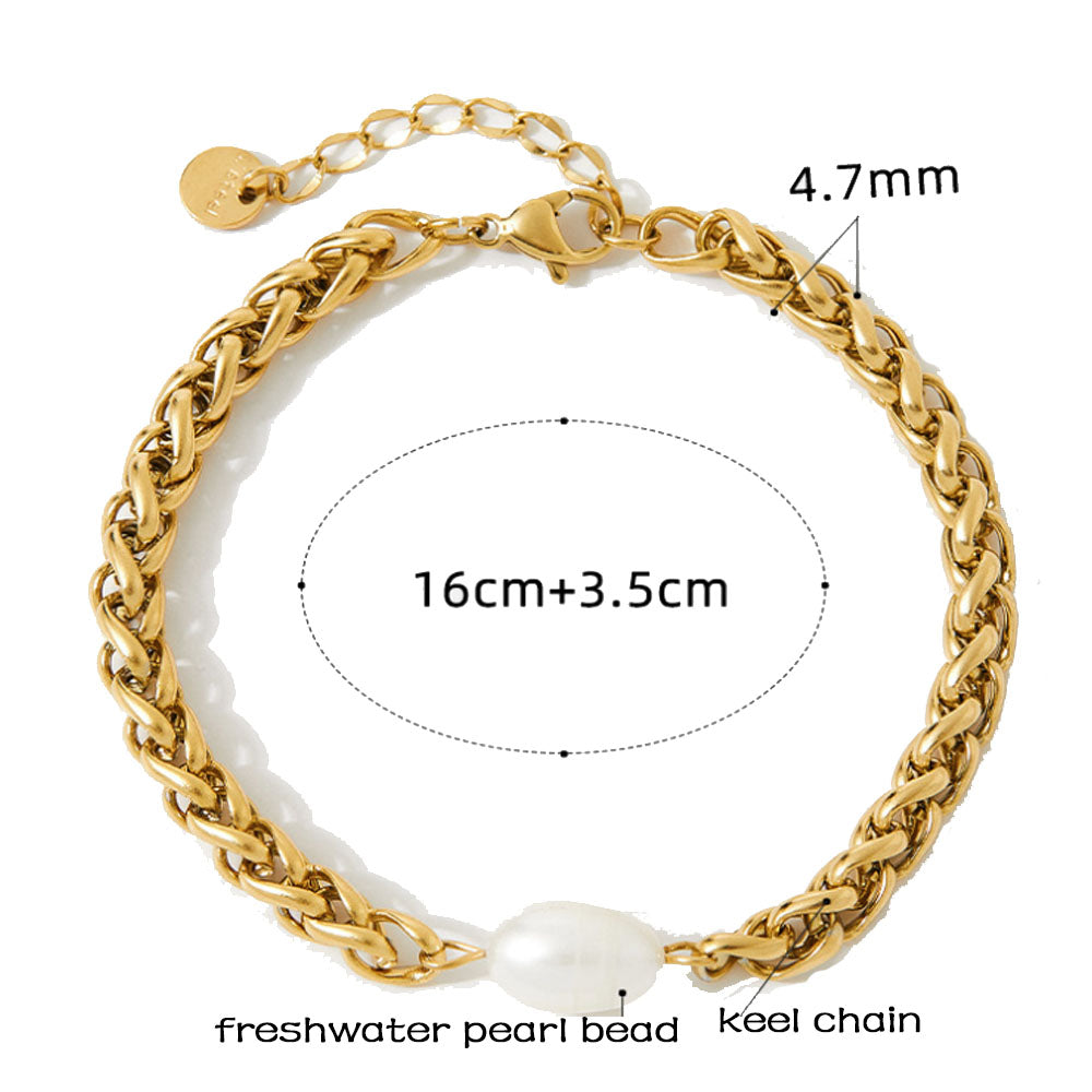 fashion new design stainless steel keel chain 4.7mm thick keel chain freshwater pearl bead charm bracelet jewelry supplier