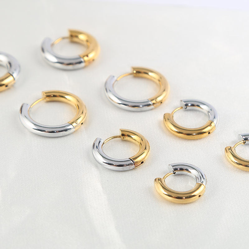 fashion simple boho stainless steel gold plated tarnish free hypoallergenic half gold half silver earrings small hoop unisex
