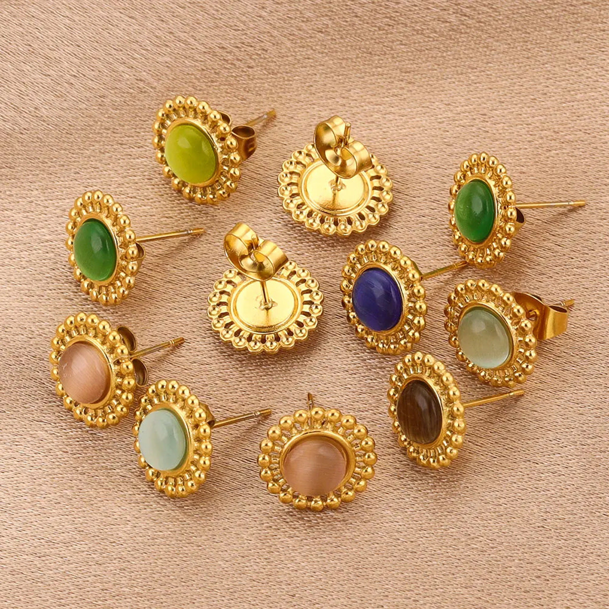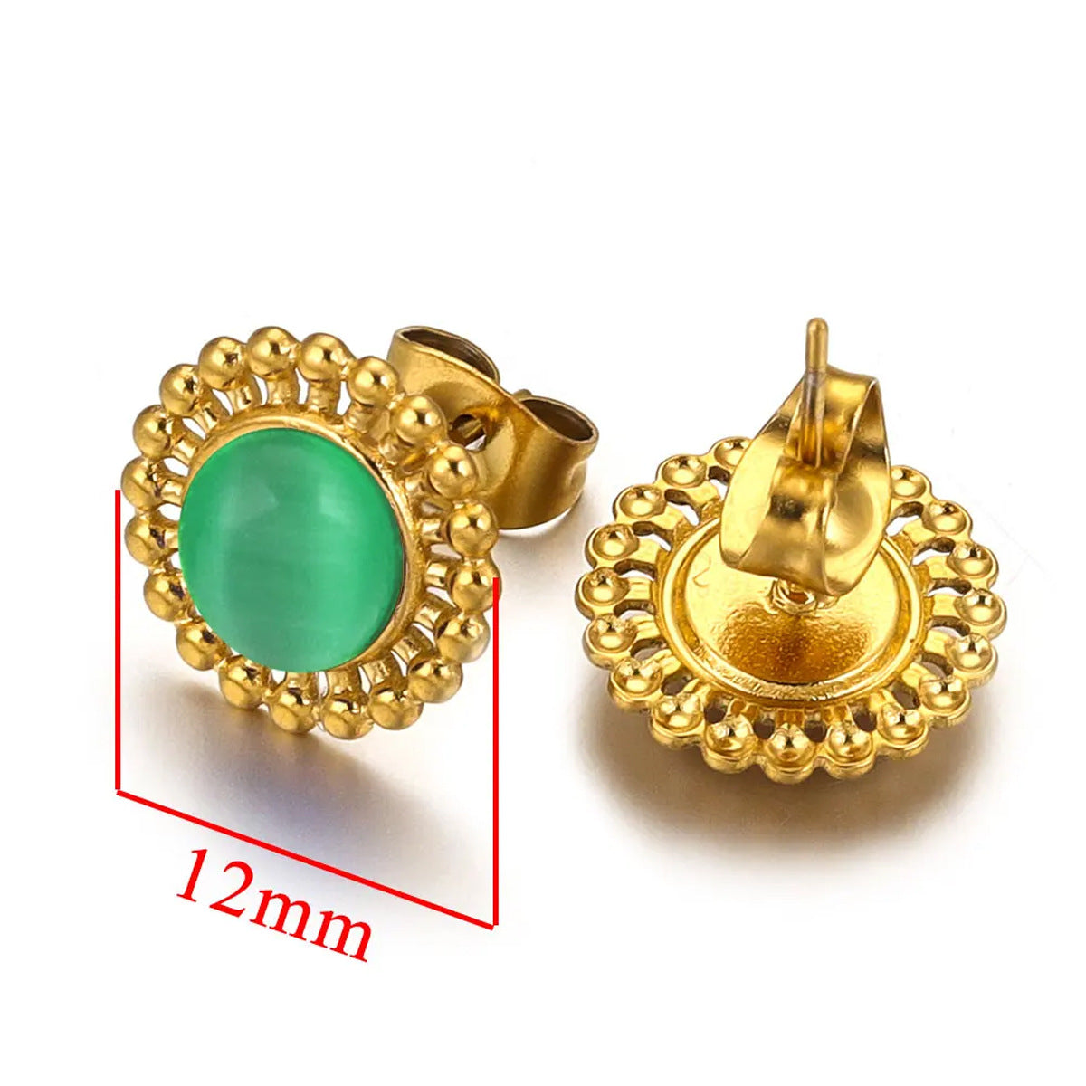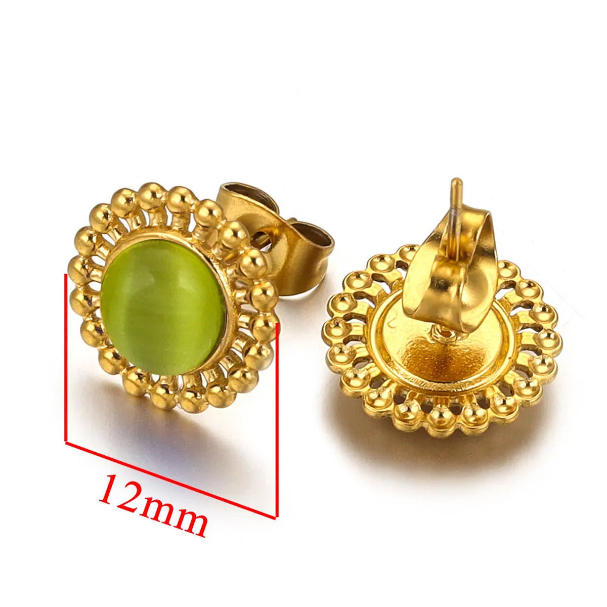 fashion small tiny stainless steel diamond green glass stone crystal stud earrings designs sets collections jewelry