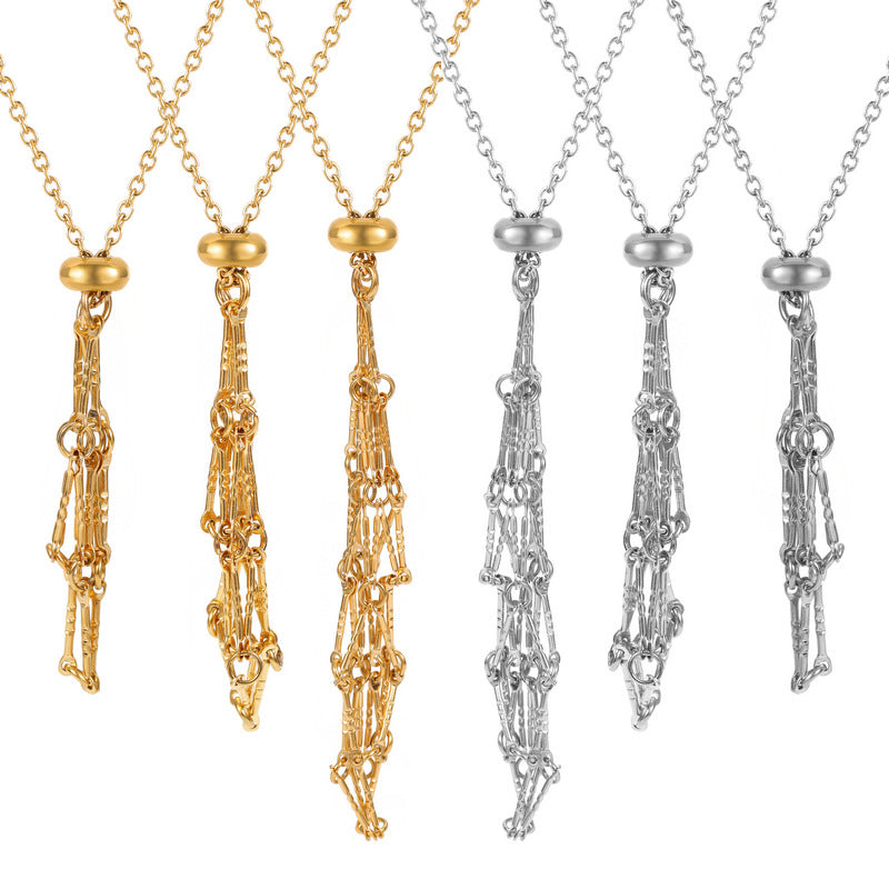Fashion Stainless Steel 18k Gold Plated Chain Crochet Cage Pocket Bag Pouch Crystal Stone Sphere Holder Necklace for Pearl