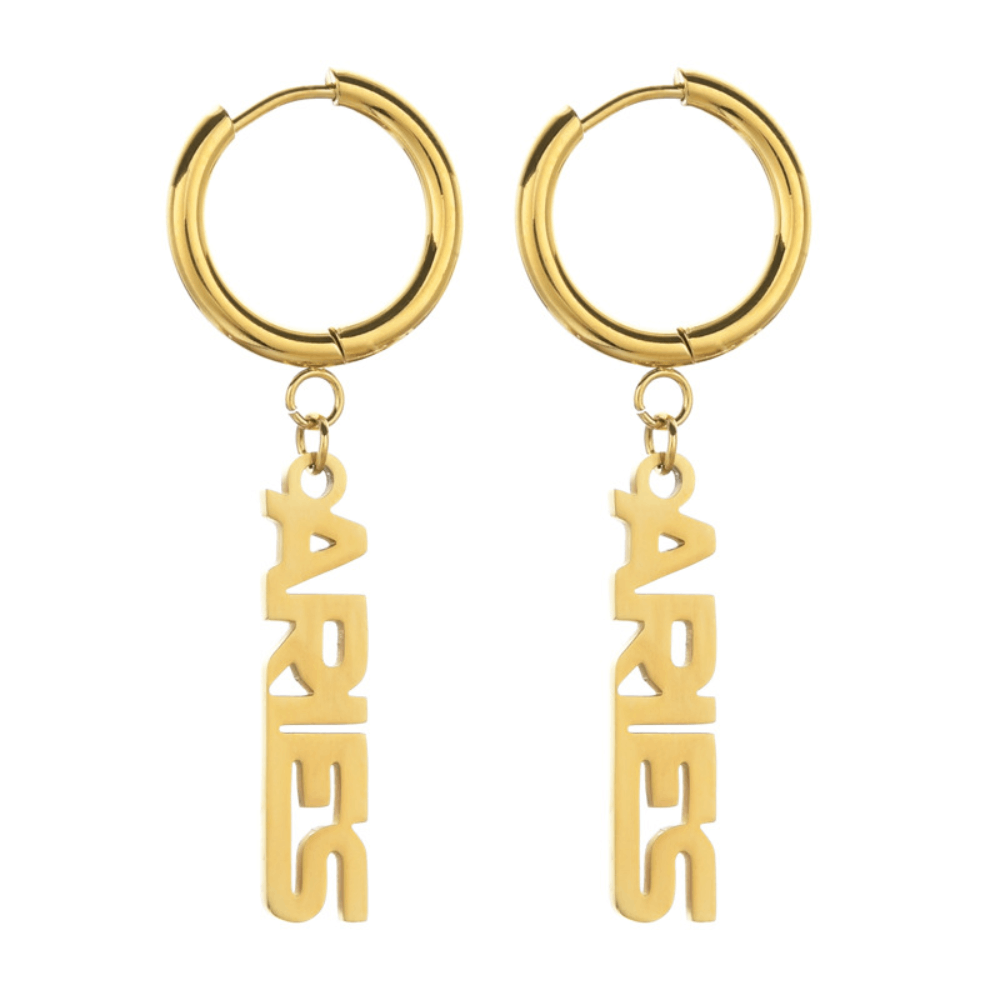 Fashion Stainless Steel English Font Stainless Steel Zodiac Sign Earrings Hoop Jewelry Women