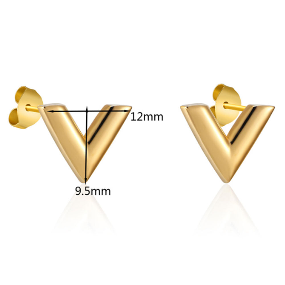 fashion stainless steel silver gold and rose gold tiny v shape stud earrings Korean jewelry