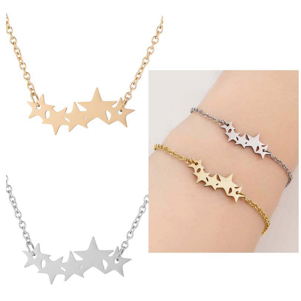 wholesale fashion titanium stainless steel jewelry stars pendant charms necklace and ladies bracelet gold and silver jewelry