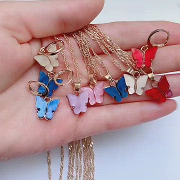 Fashion trendy accessories acrylic butterfly charm pendan necklace andt earrings jewelry set
