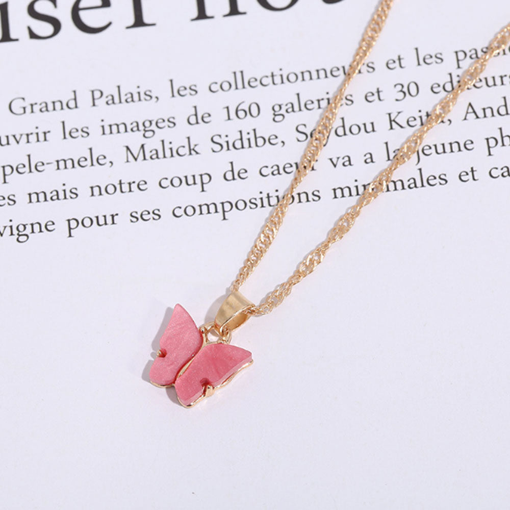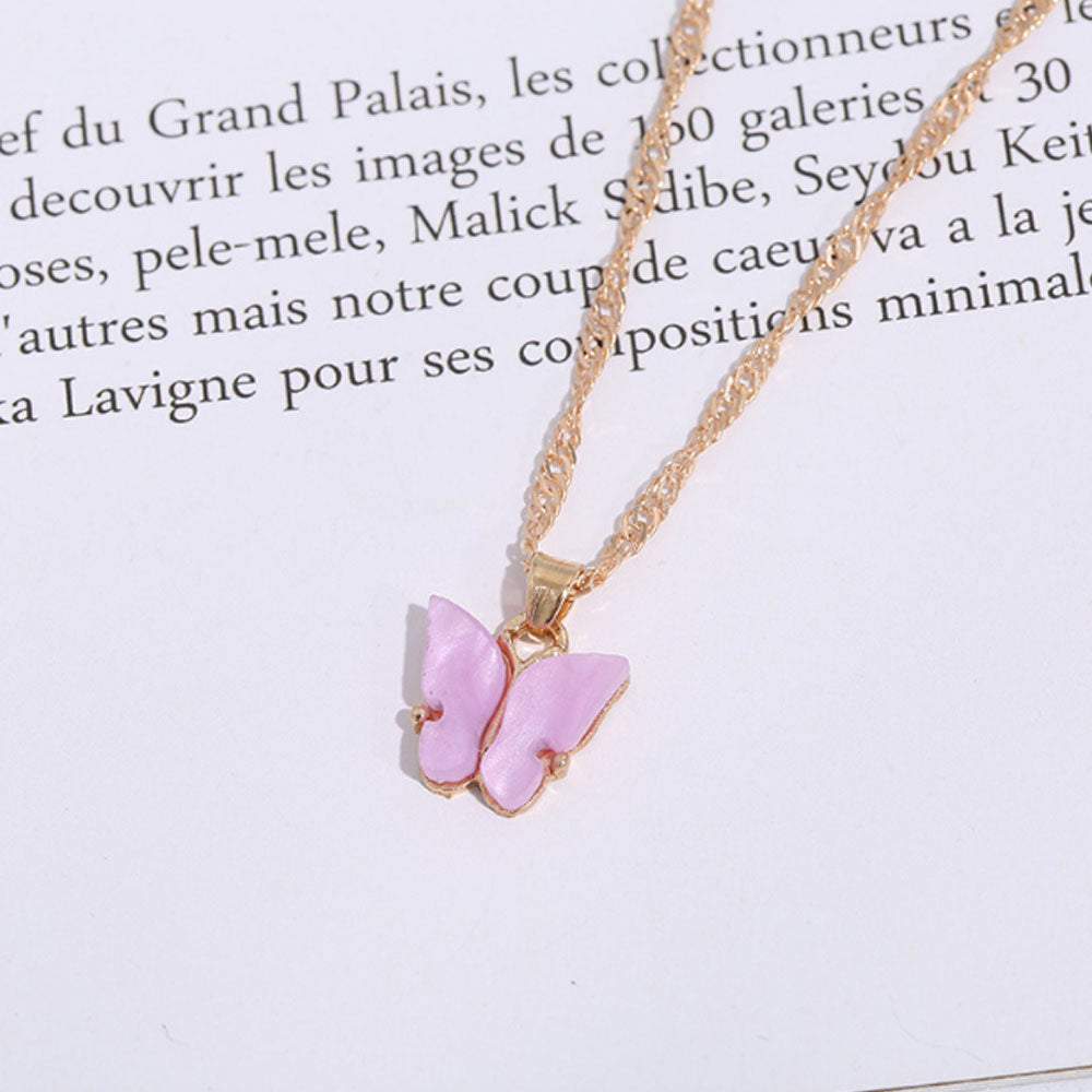 Trendy butterfly necklace jewelry set alloy resin acrylic fashion charm pendant gold blue pink acrylic animal necklace butterfly