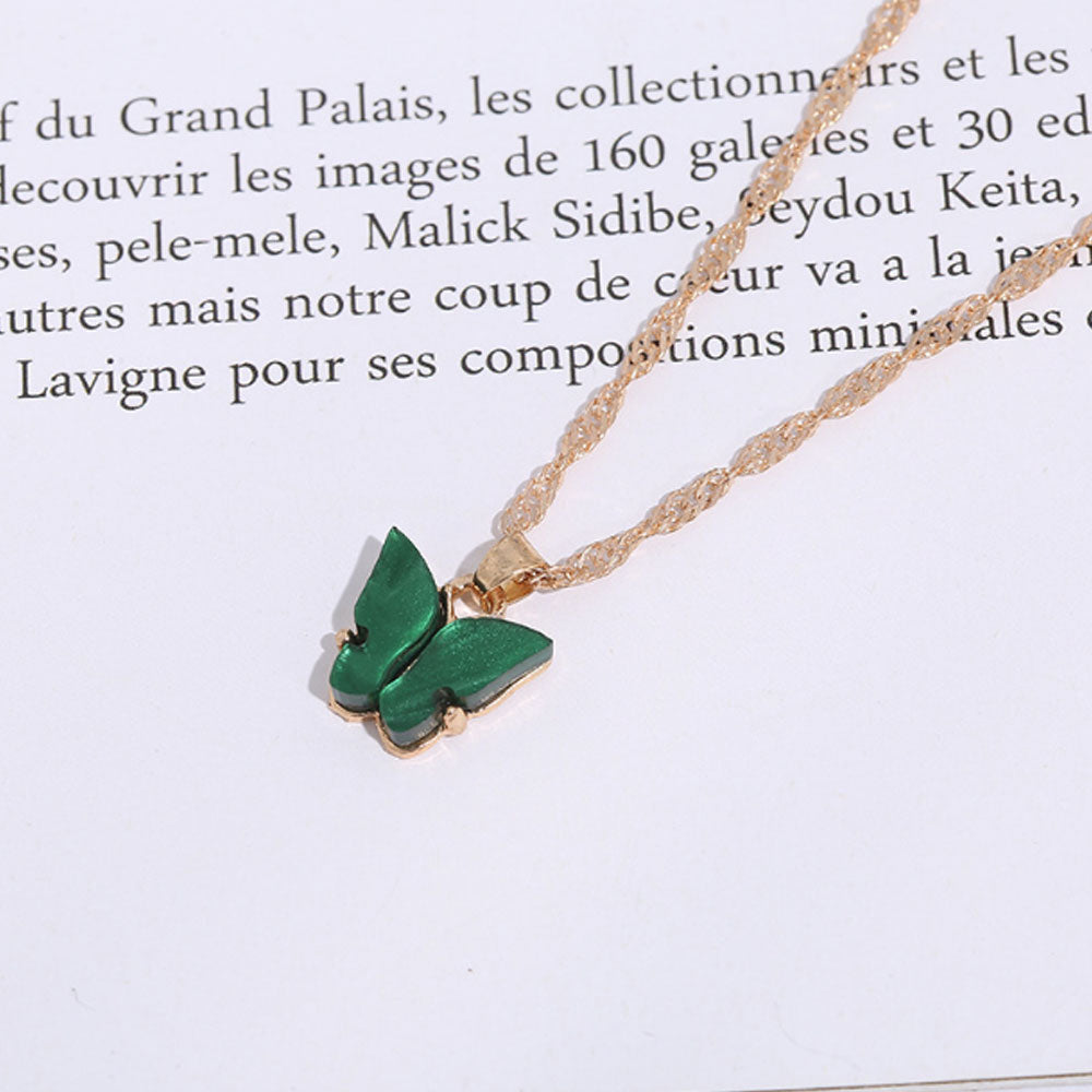 Fashion Trendy alloy acrylic fashion butterfly charm pendant necklace jewelry women