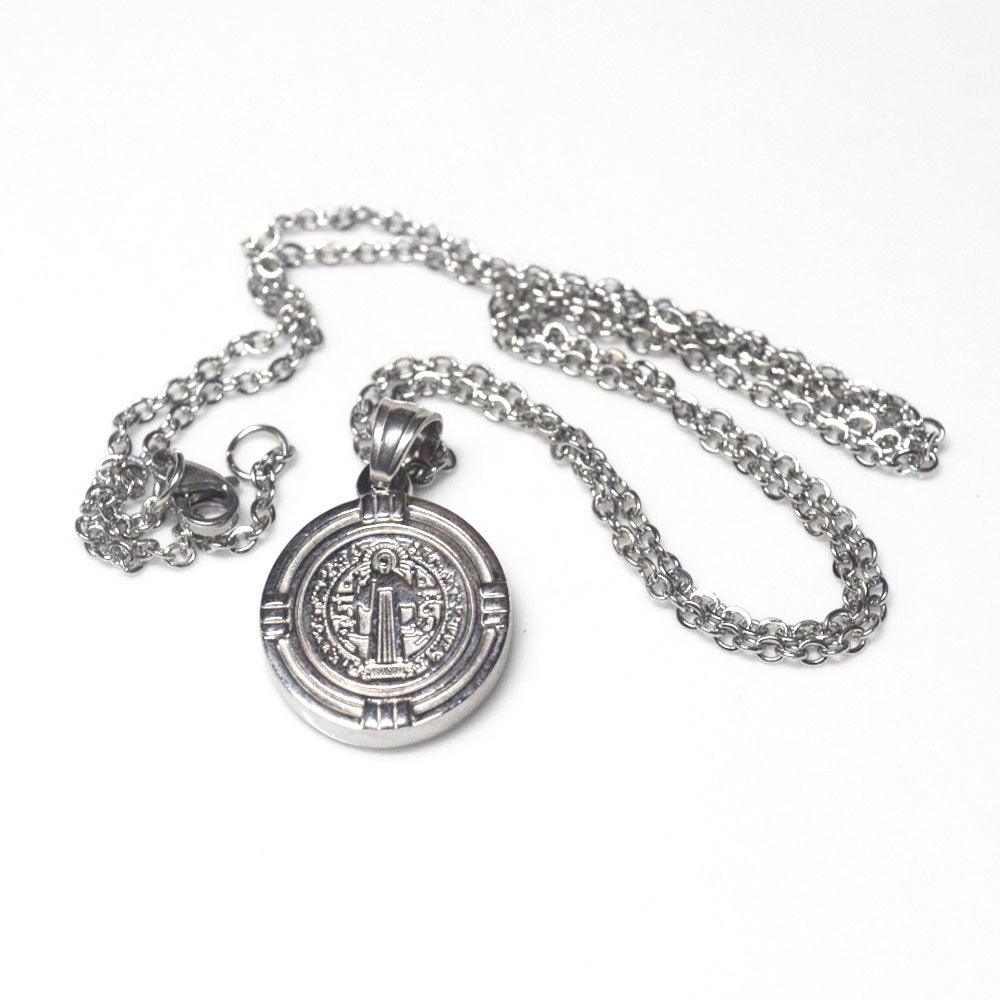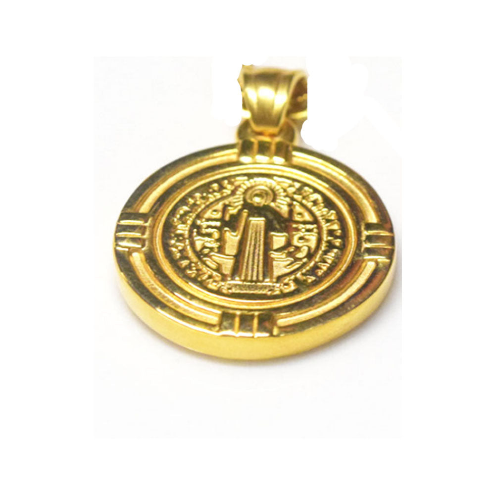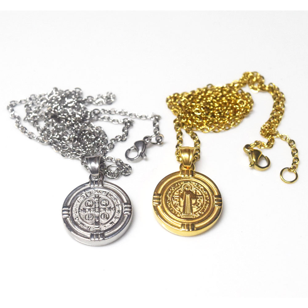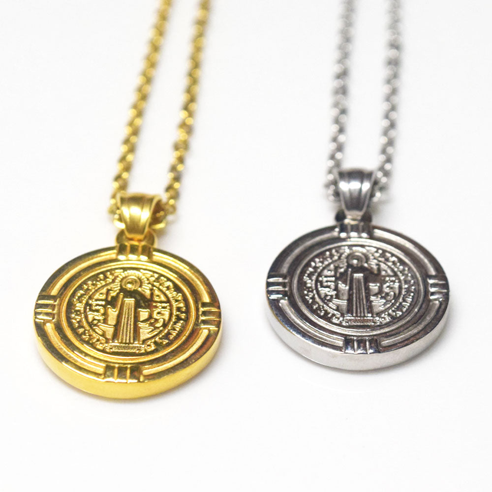 fashion trendy men's stainless steel silver and gold with st benedict medal pendant necklace jewelry
