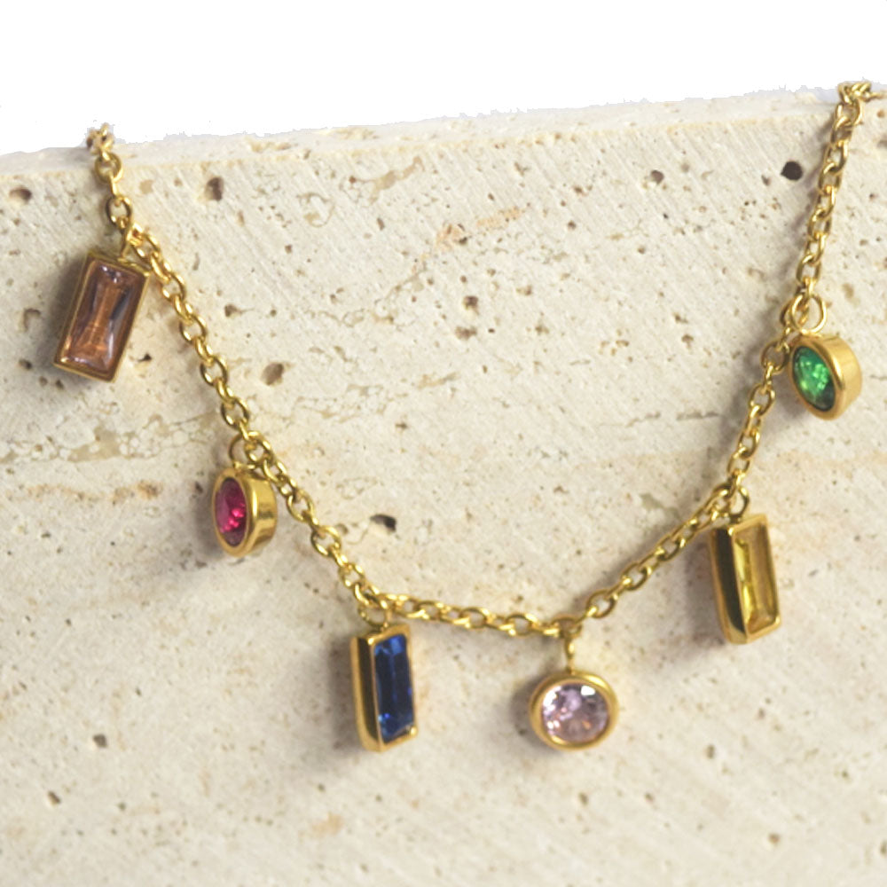 fashion trendy stainless steel gold plated zircon beads charm pendant tassel bracelet party wedding bracelets supplier