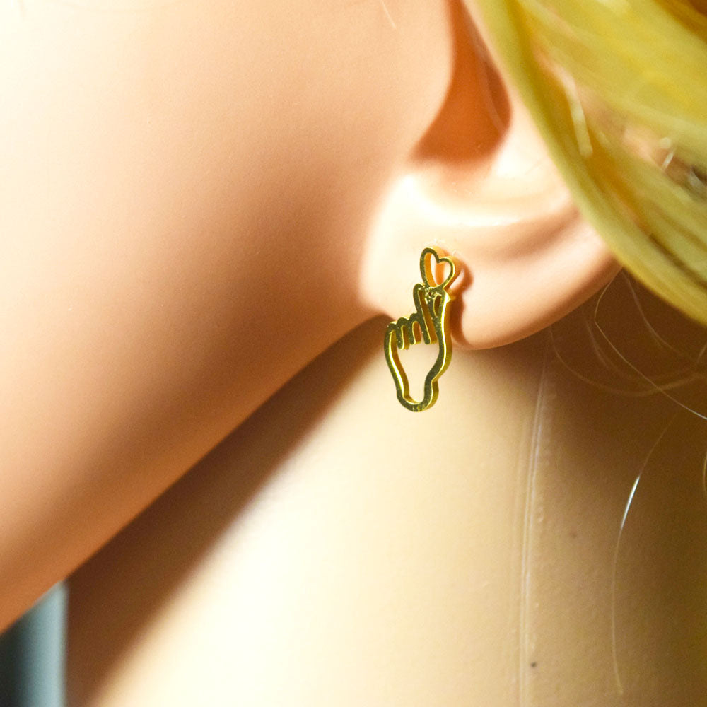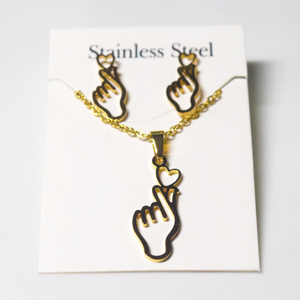 fashion women stainless steel gold color love you hand gesture necklace and earring jewelry set