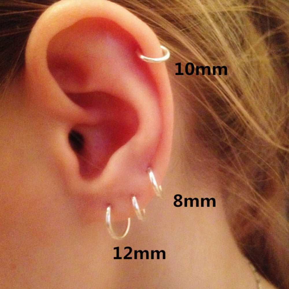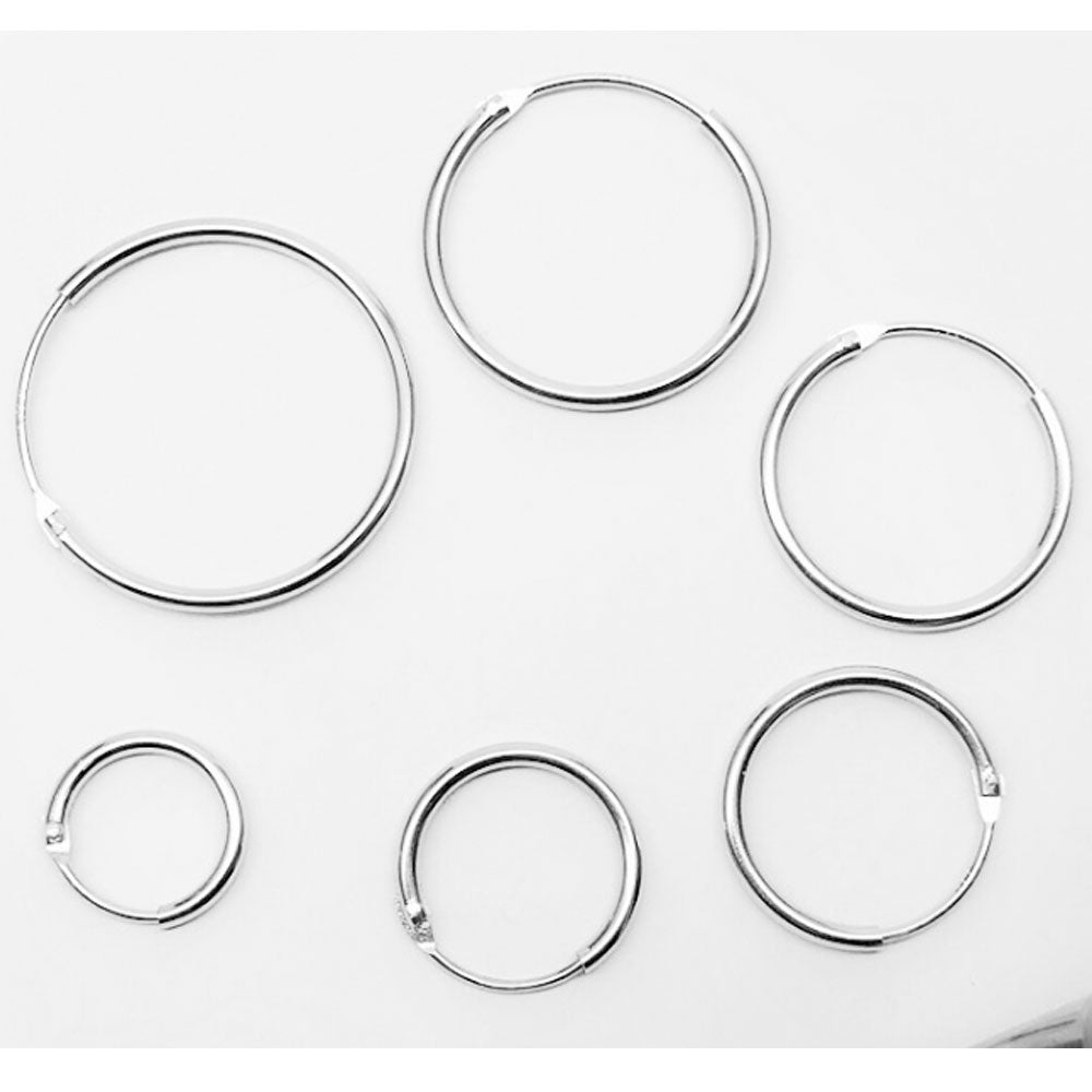 full zises sterling silver 925 with 18k white gold plated hoops earrings plain jewelry unisex for both women and men