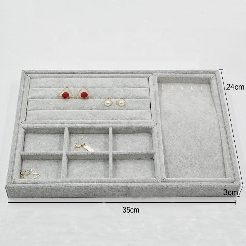 Large Size Gem Earring Ring Bracelet Pendant Necklace Display Storage Packaging Gray Velvet Jewelry Tray Stackers for Jewellery Organizer