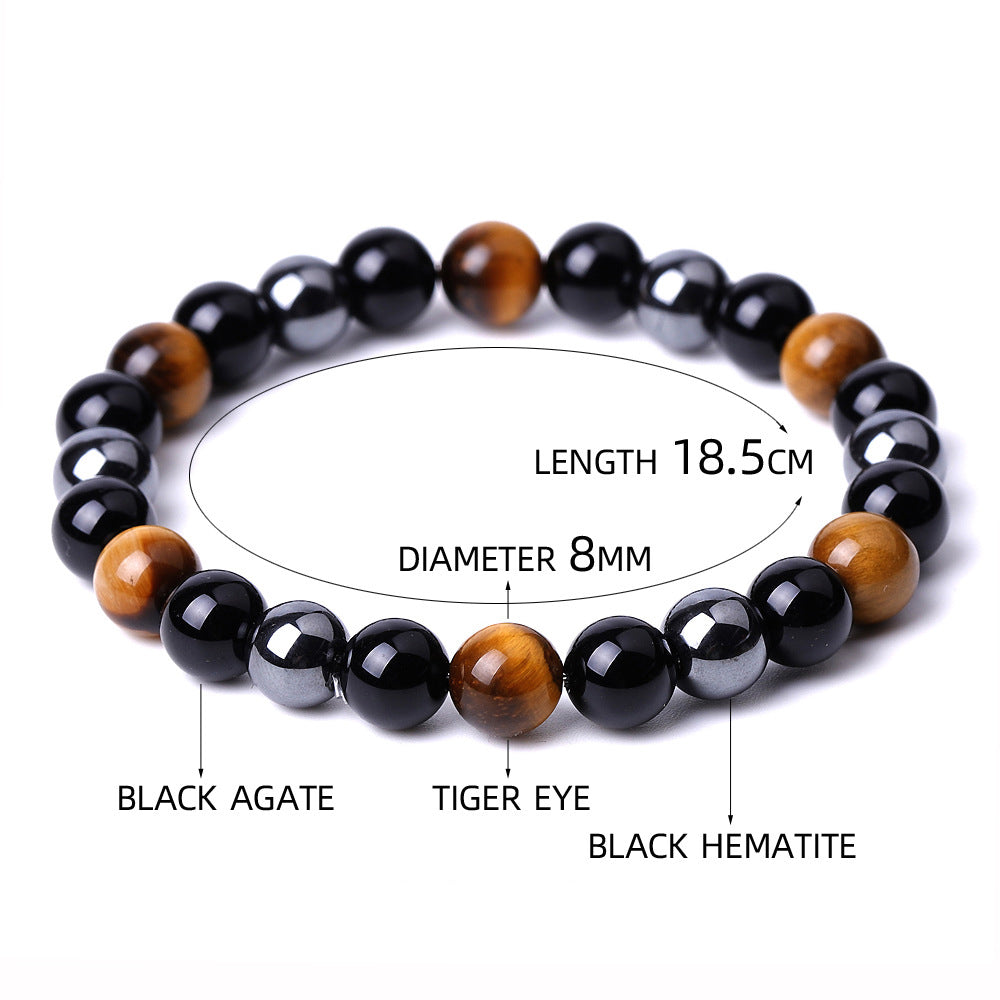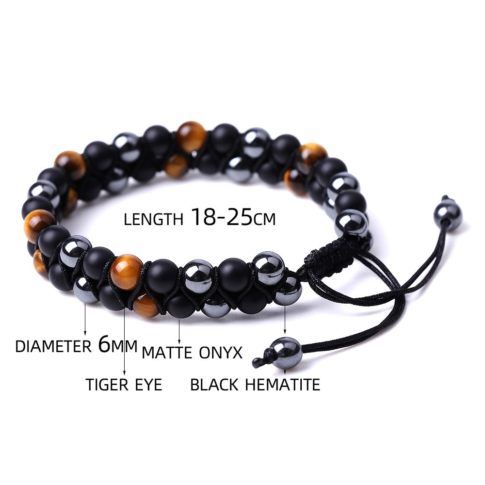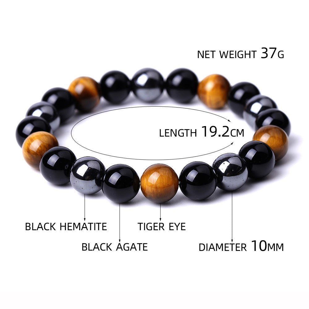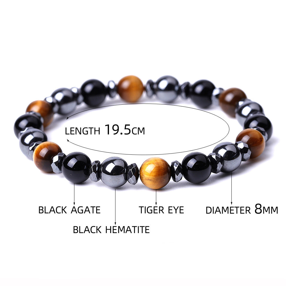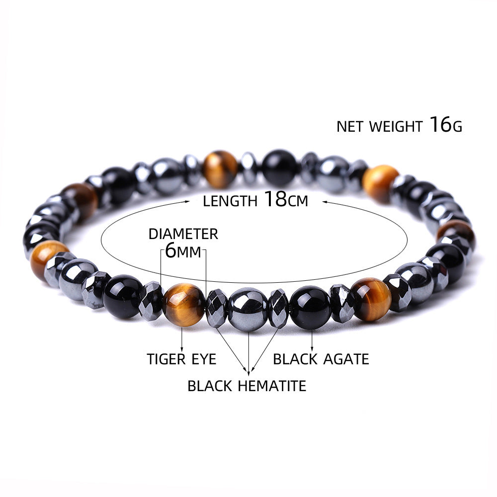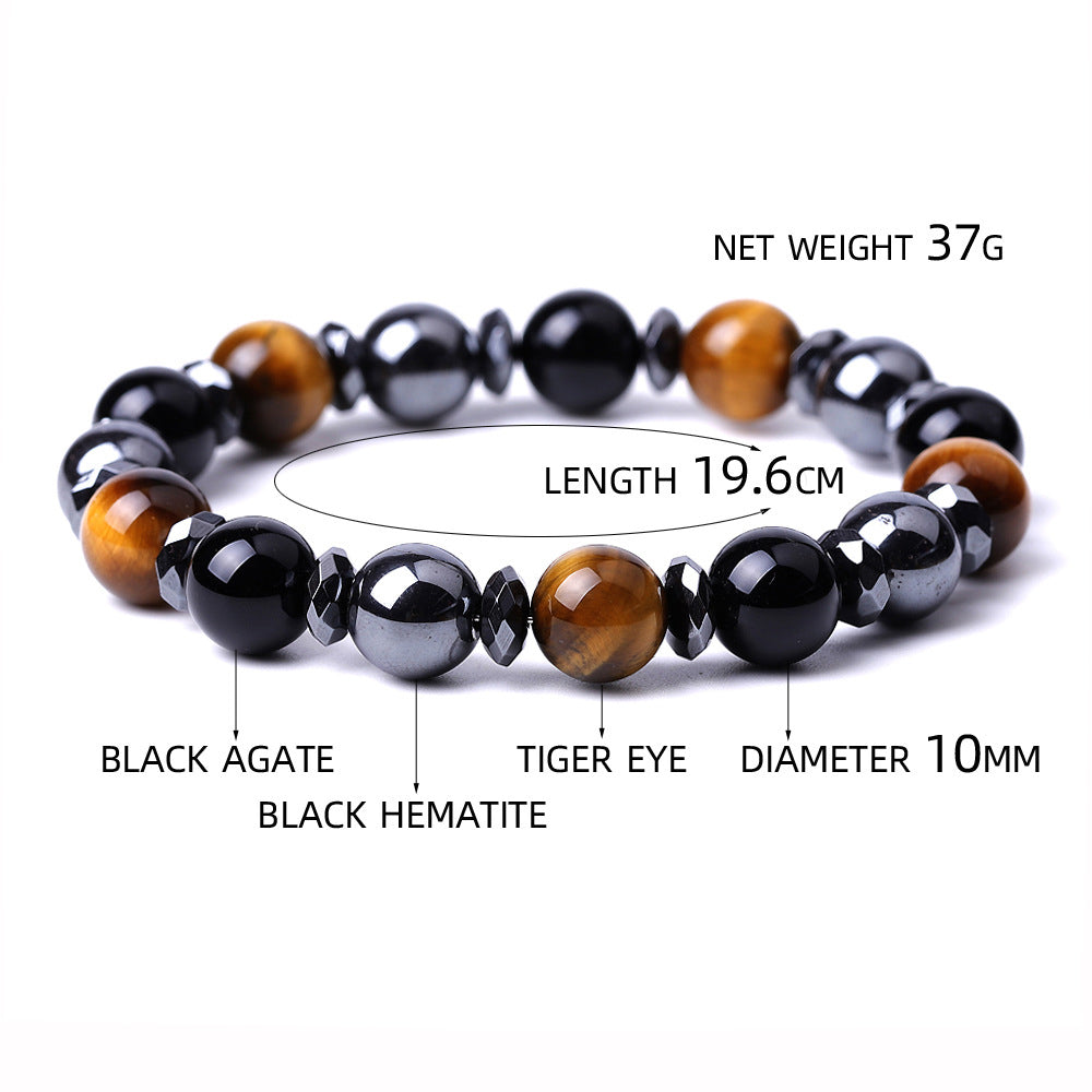 genuine black onyx hematite tiger eye crystal stone beads combo adjustable elastic bracelet for weight loss men and women