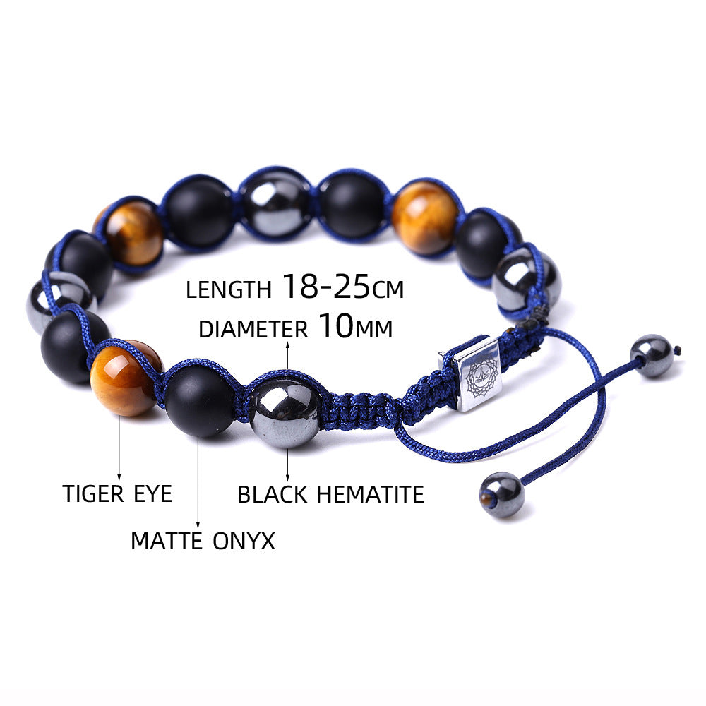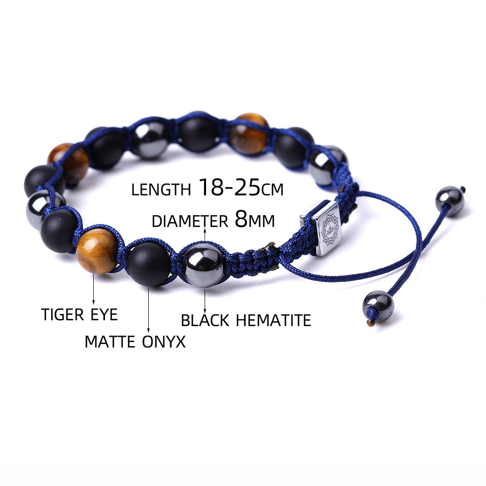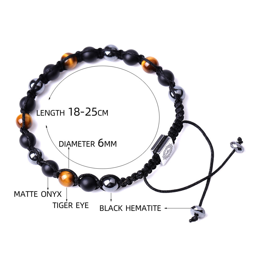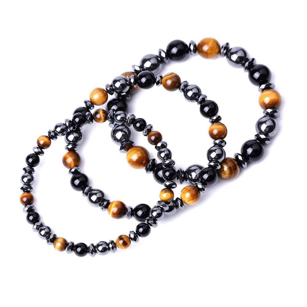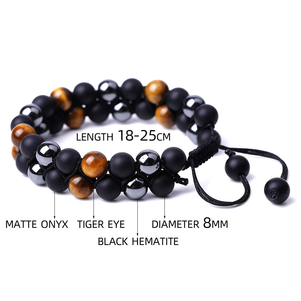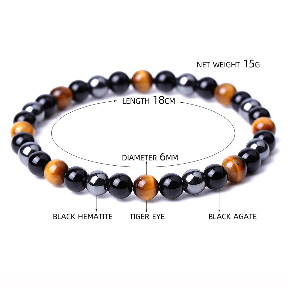 genuine black onyx hematite tiger eye crystal stone beads combo adjustable elastic bracelet for weight loss men and women