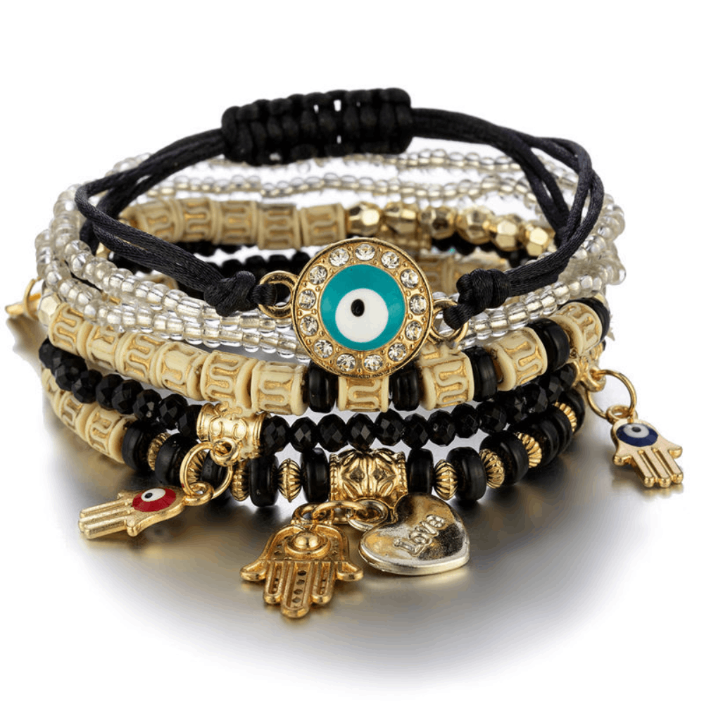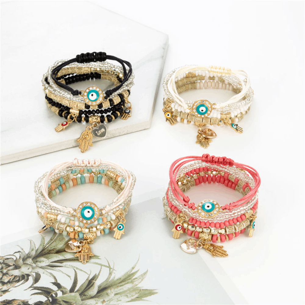 glass crystal beads beaded hamsa hand d-evil eye charm ancle stackable bracelet pour femme bracelets jewelry