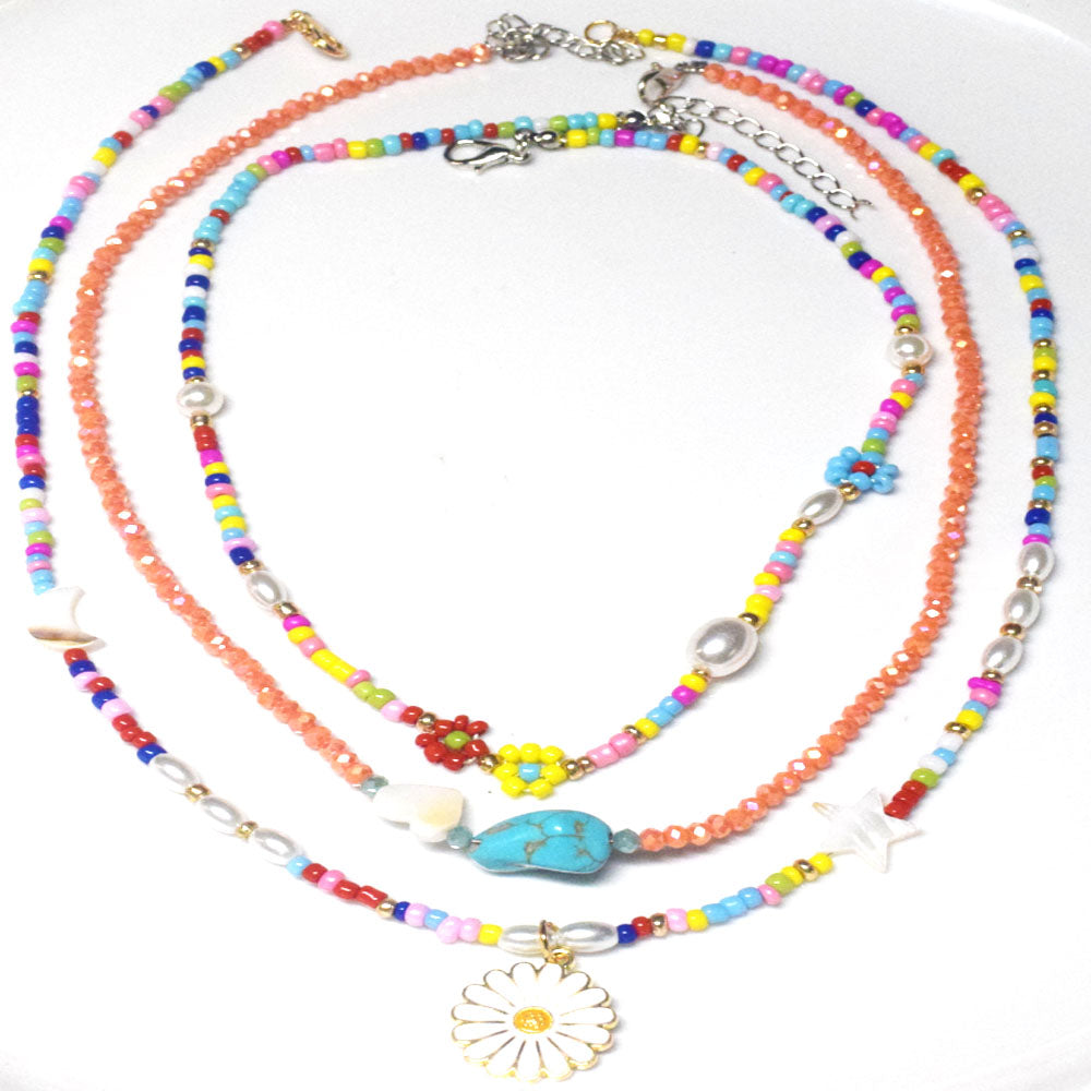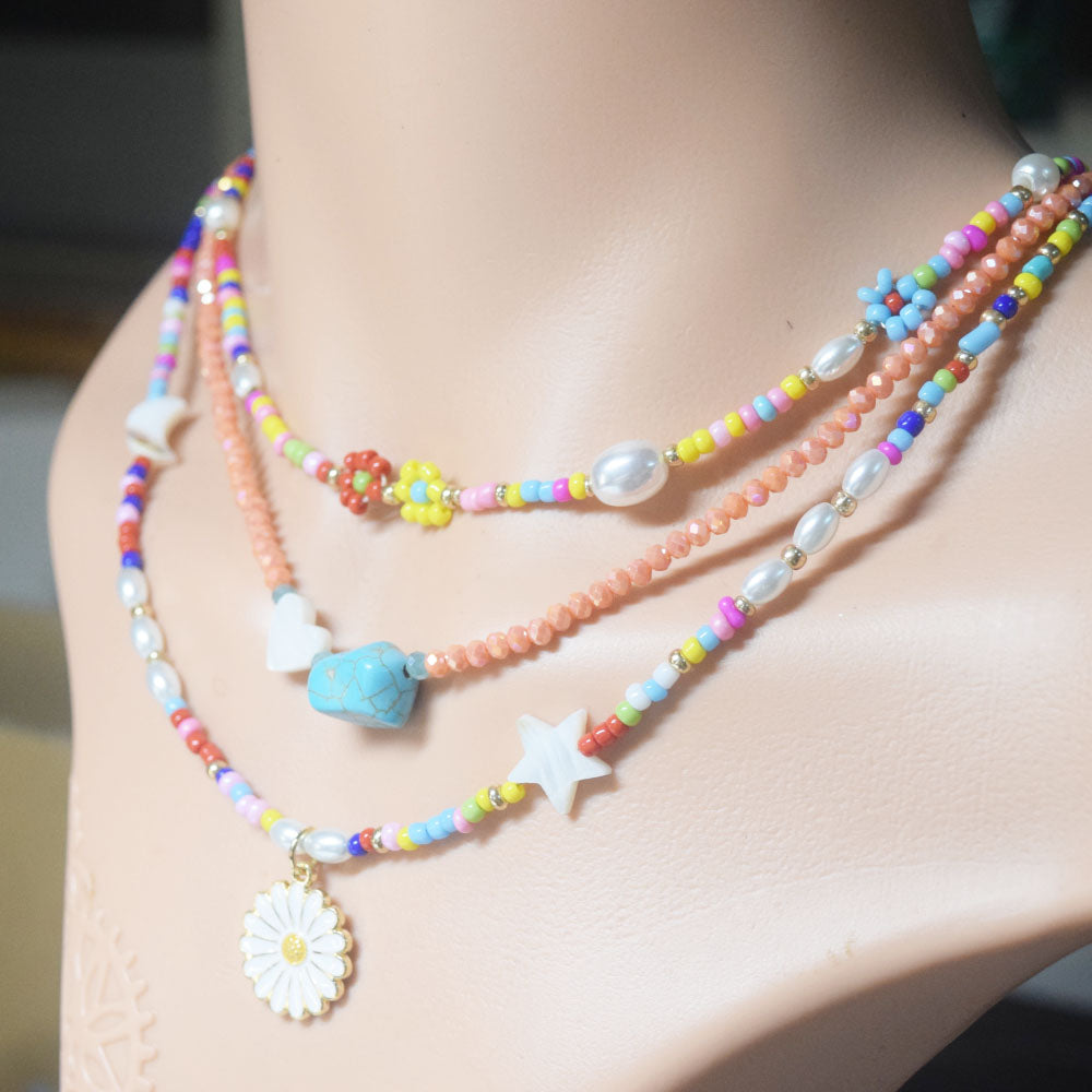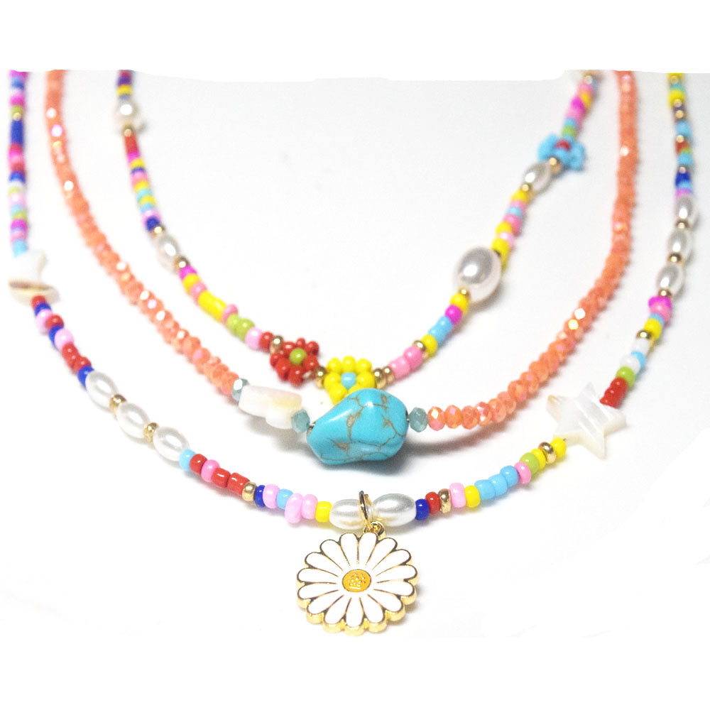 glass seed beads turquoise stone shell bead abs pearl beaded bohemian multiple layers necklace jewelry women layered necklaces