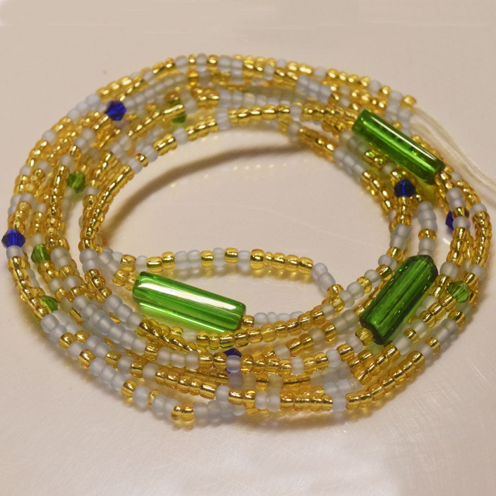 gold blue bead green tube crytal charm weightloss double string cotton tie on african waist beads belly chain body jewelry women