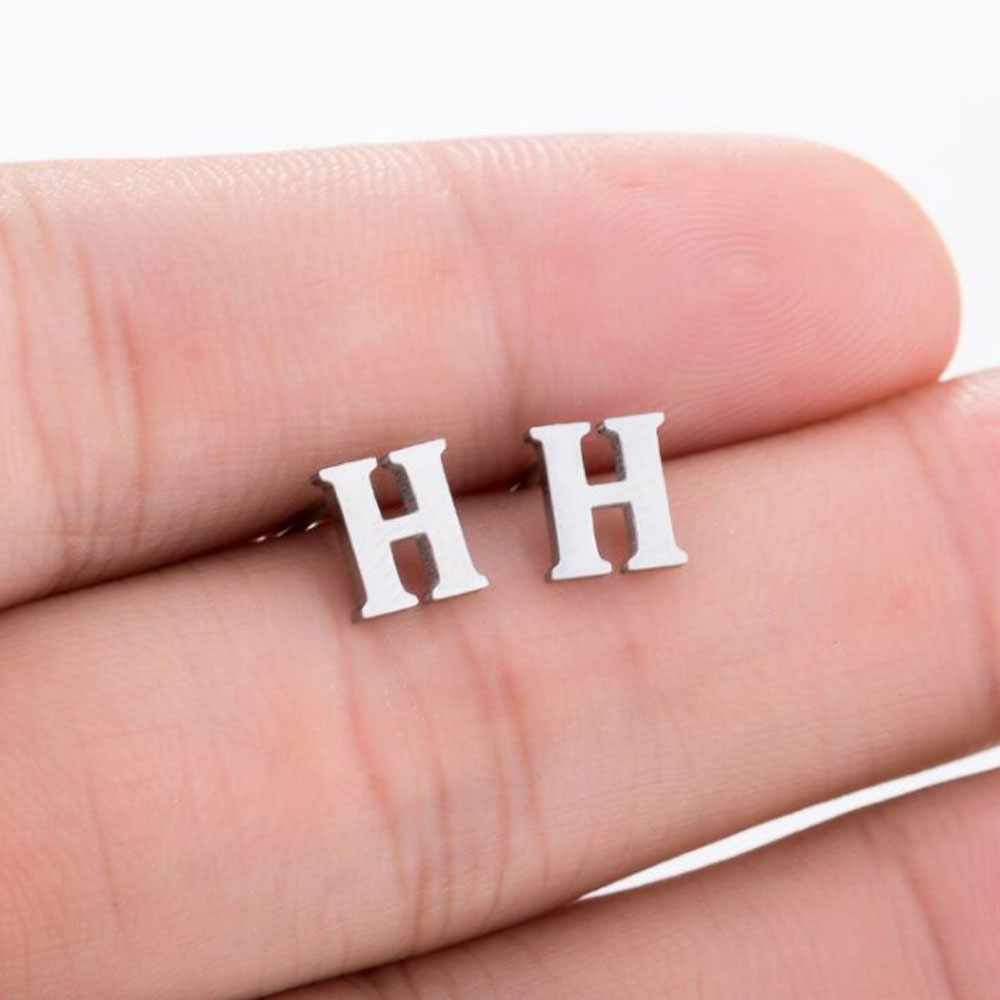 Gold Color fashion safety pin surgery stainless steel tiny initial alphabet letter stud earrings jewelry for women