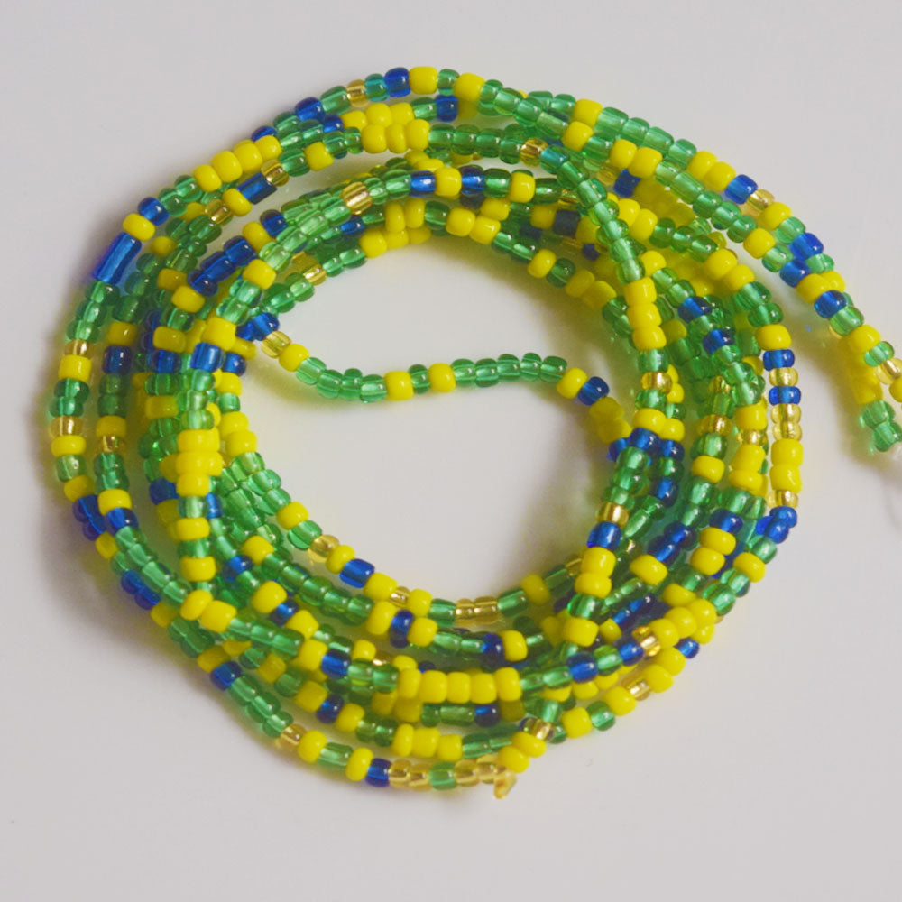 green yellow blue colors mixed african mix glass seed beads tie on waist beads belly body chain double cotton string for ladies