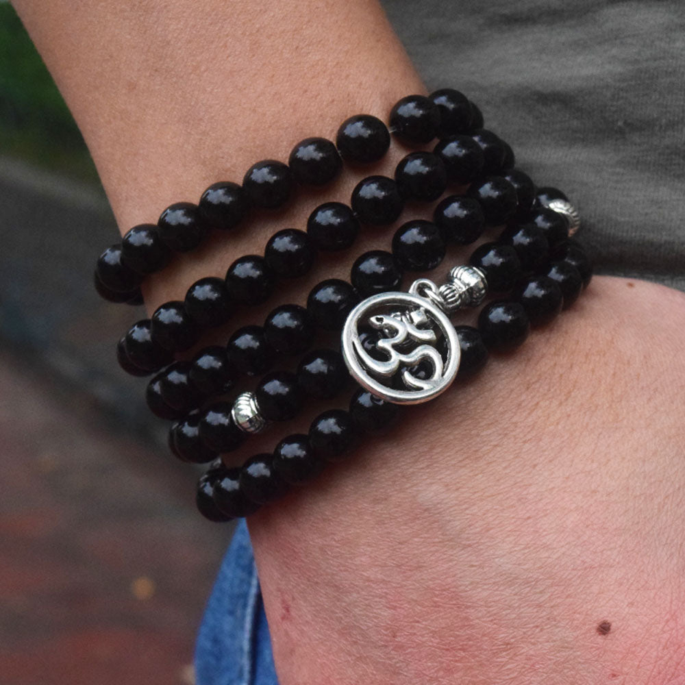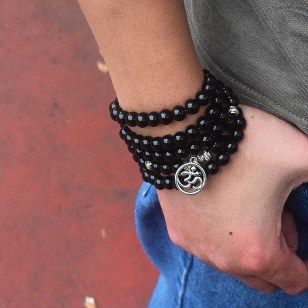 black stone gem-stone beads mala 108 bracelet/necklace