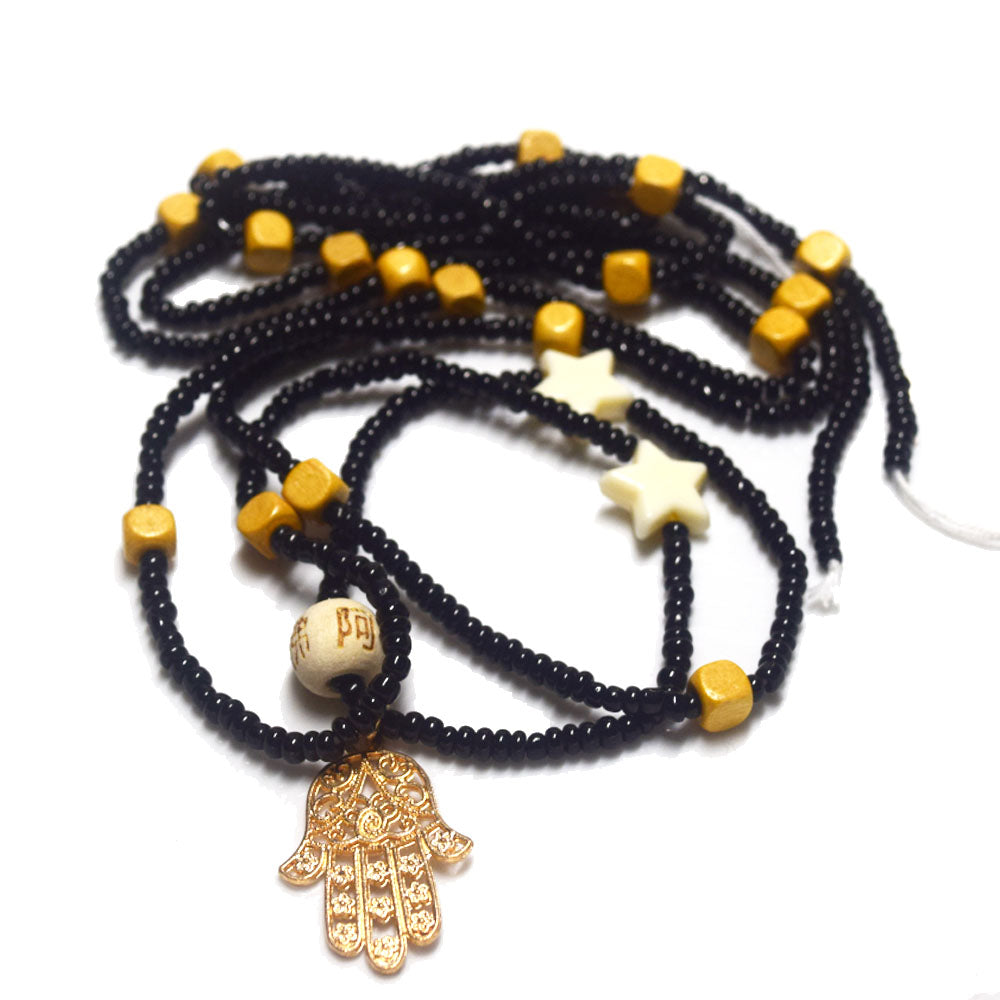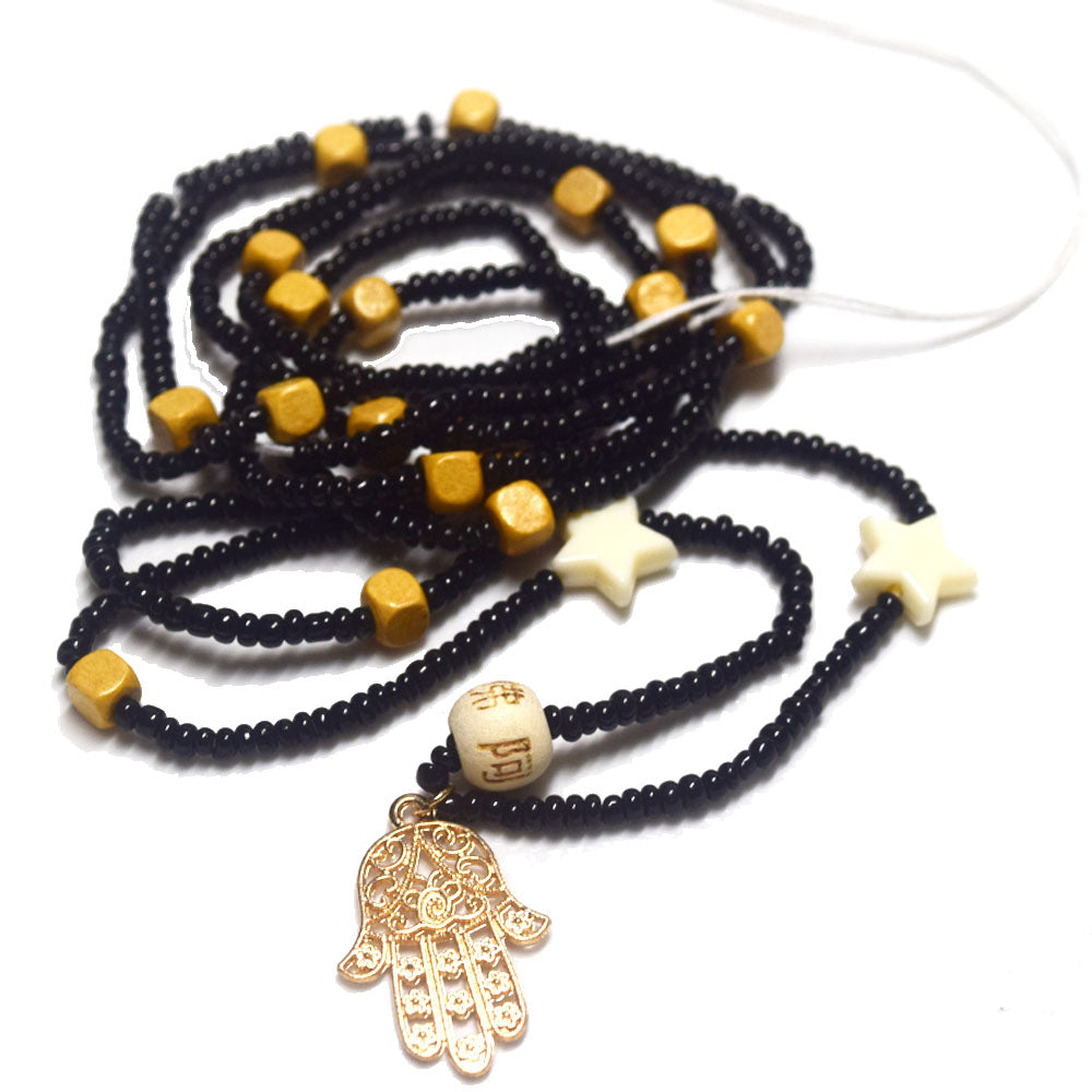 handmade african culture plus size wood hamsa hand eye charn pedant waist beads for weight loss cotton cord belly chain jewelry