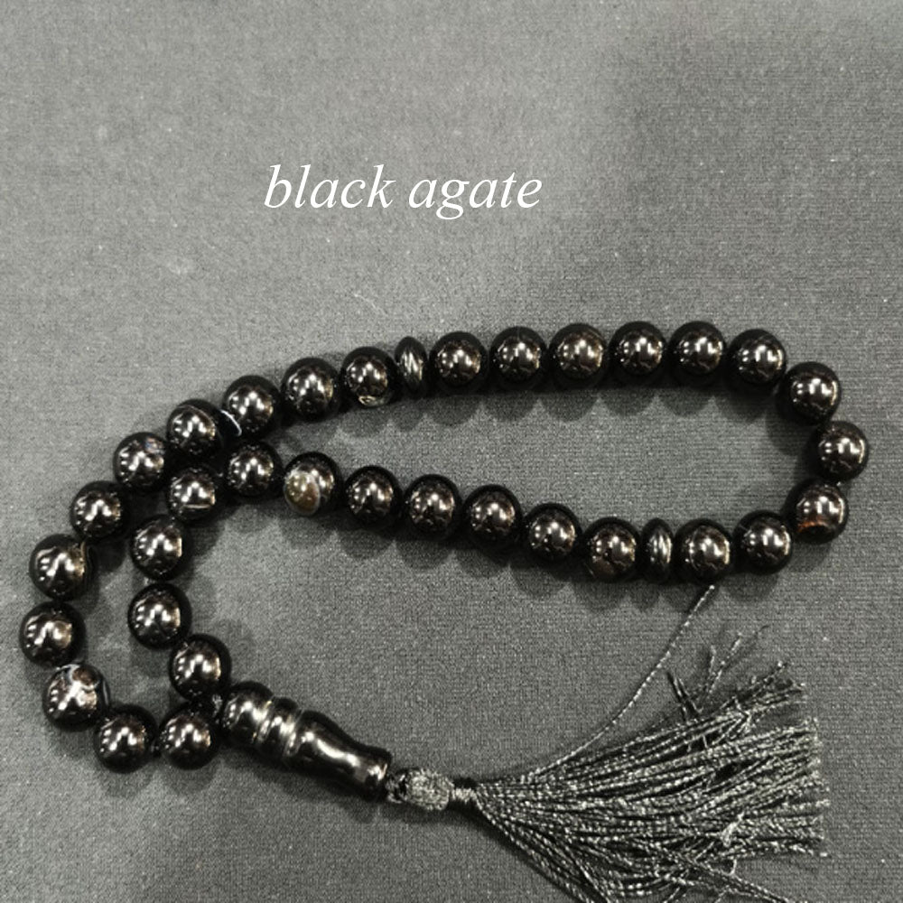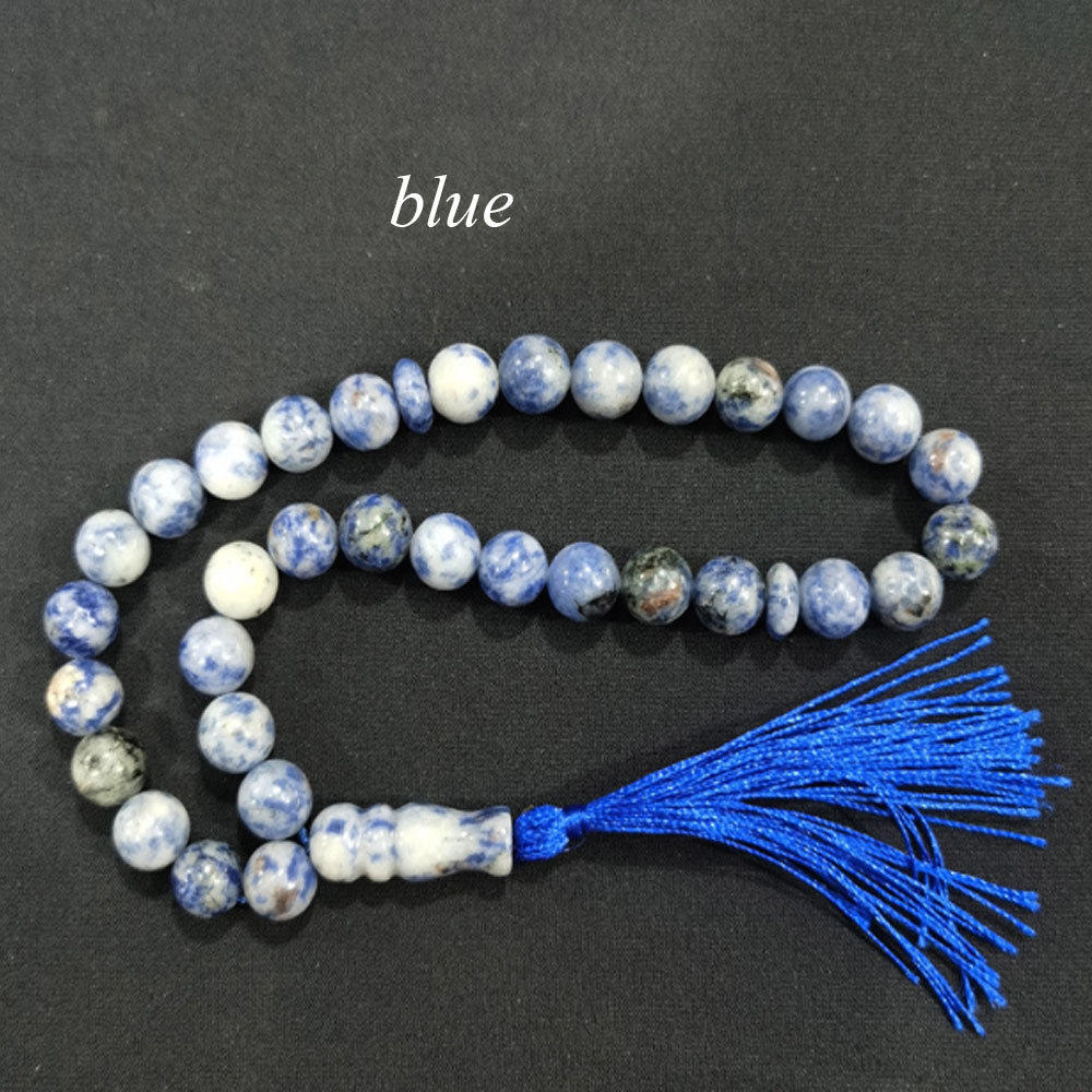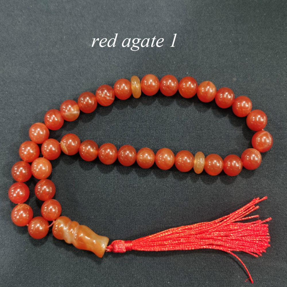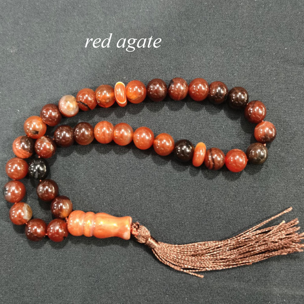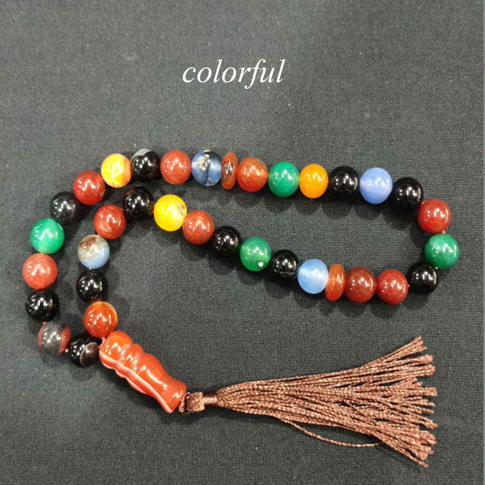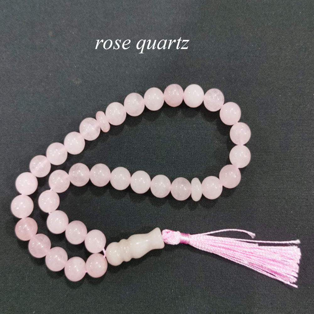 handmade boho natural gemstone rose quartz agate islamic muslim prayer 33 beads wrist bracelet tasbih tassel pendant accessory