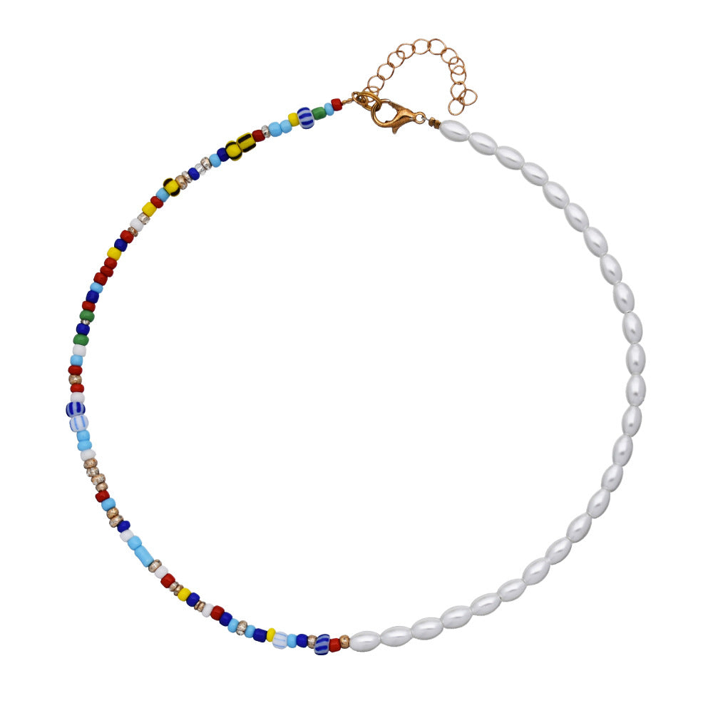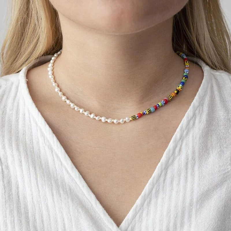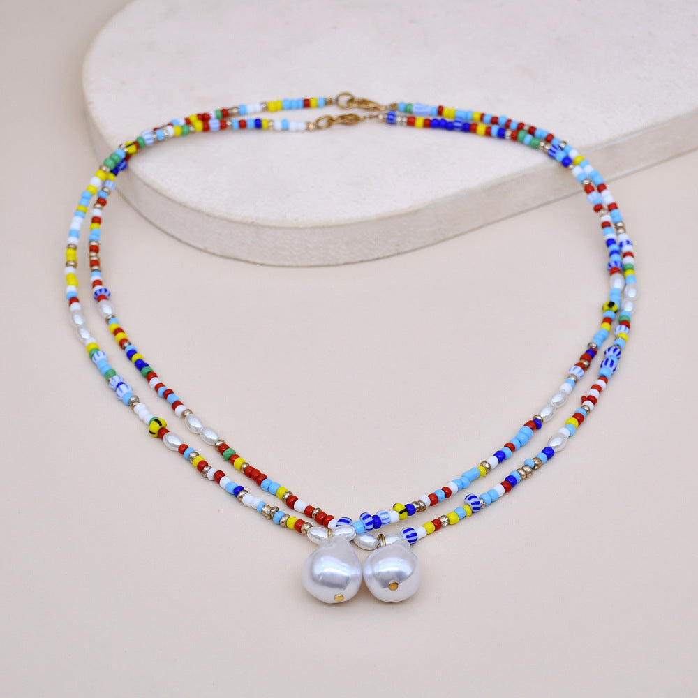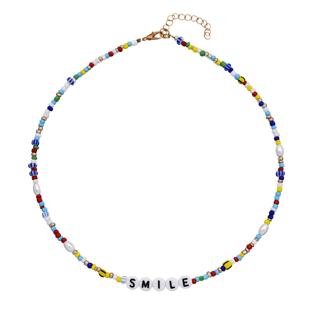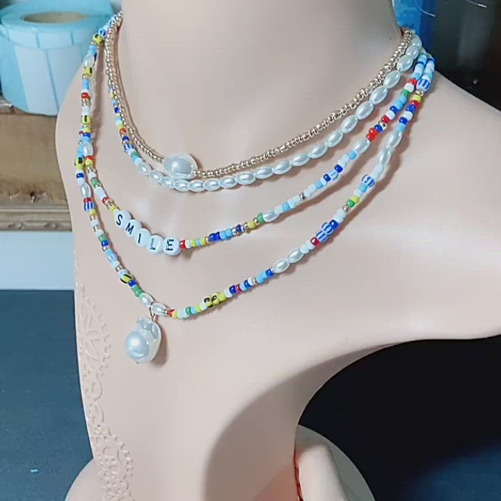 handmade colorful bohemian layers glass seed beads abs pearl beads smile letter charm layered necklace jewelry