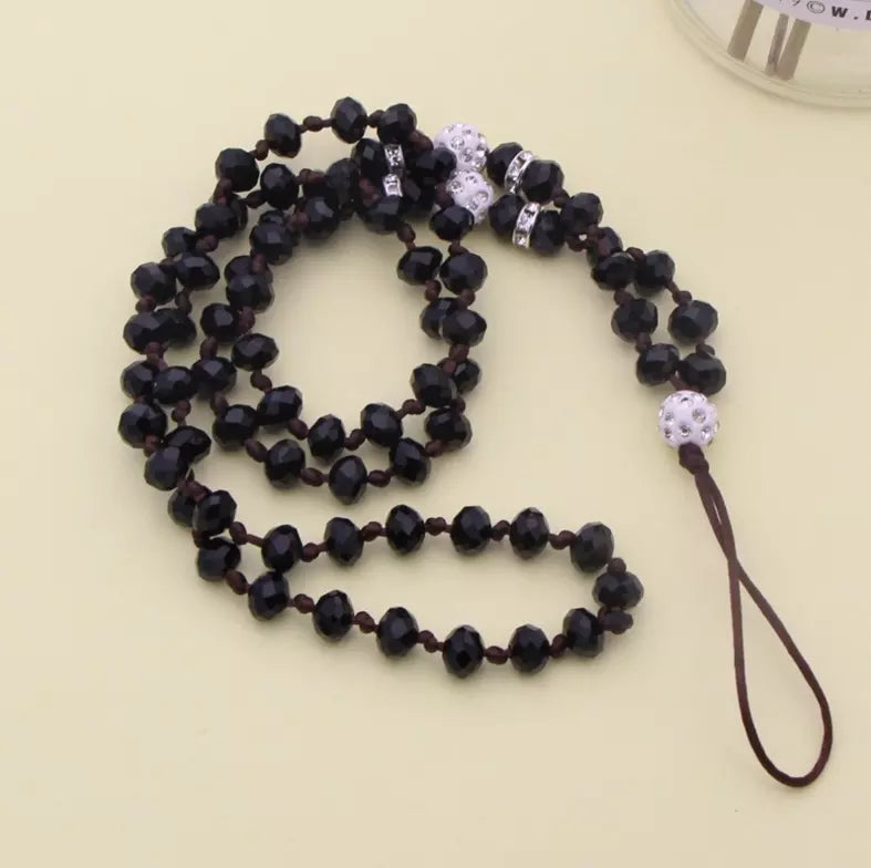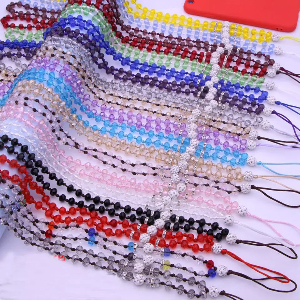 handmade crystal beads 32 inches/90CM Long hang around necklace lanyard strap string accessory for mobile cell smart phone Case