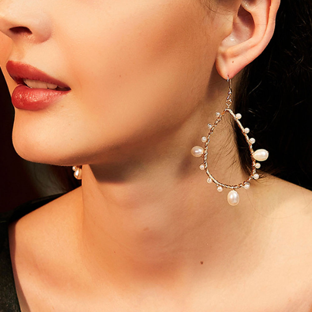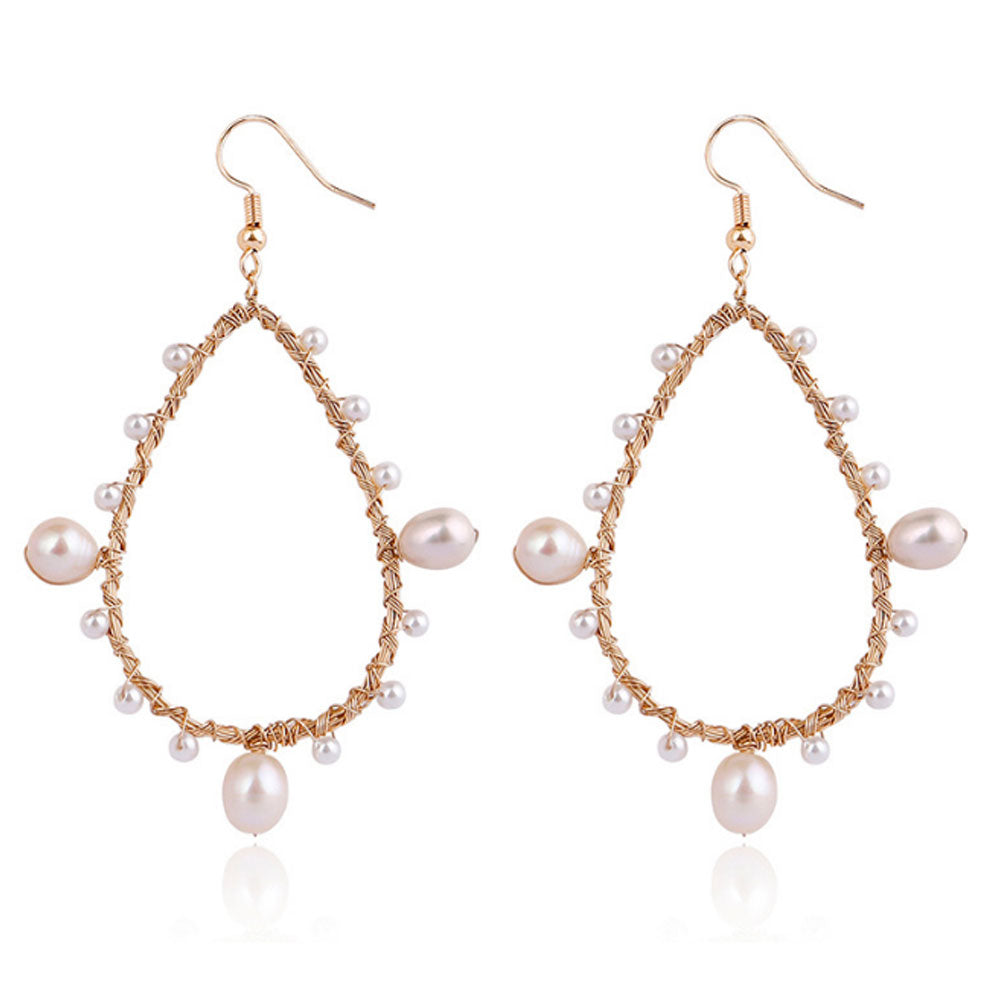 handmade fashion bohemian fresh water genuine big tear drop shaped pearl baroque cultured korean dangling long earrings women